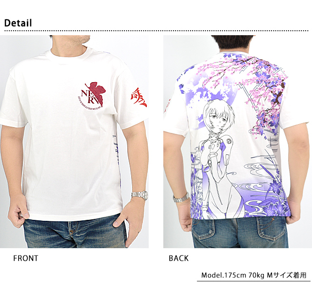 新感覚のオリエンタルブランド、錦さんから「EVANGELION×錦 綾波満桜華半袖Tシャツ(554218)」のご紹介です。 大人気コンテンツ「ヱヴァンゲリヲン」と錦のコラボシリーズから、最新作が登場!! エヴァンゲリオン零号機の搭乗者でファーストチルドレンの綾波レイをモチーフの主役に採用。 雅桜の下で佇む綾波レイをプリントでデザインしました。 絵柄上部の桜は刺繍で表現されており、奥行きのある図案に仕上げました。 フロント左胸には、NERVアイコンをワンポイントで刺繍しています。 左袖には「零」の一文字をプリントしました。 ボディーにはコットン100%の天竺素材を使用。 | |||||||||||||||||||||||||