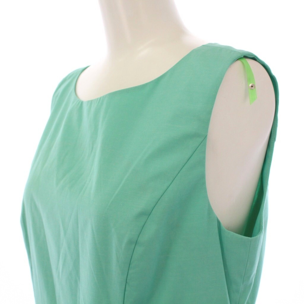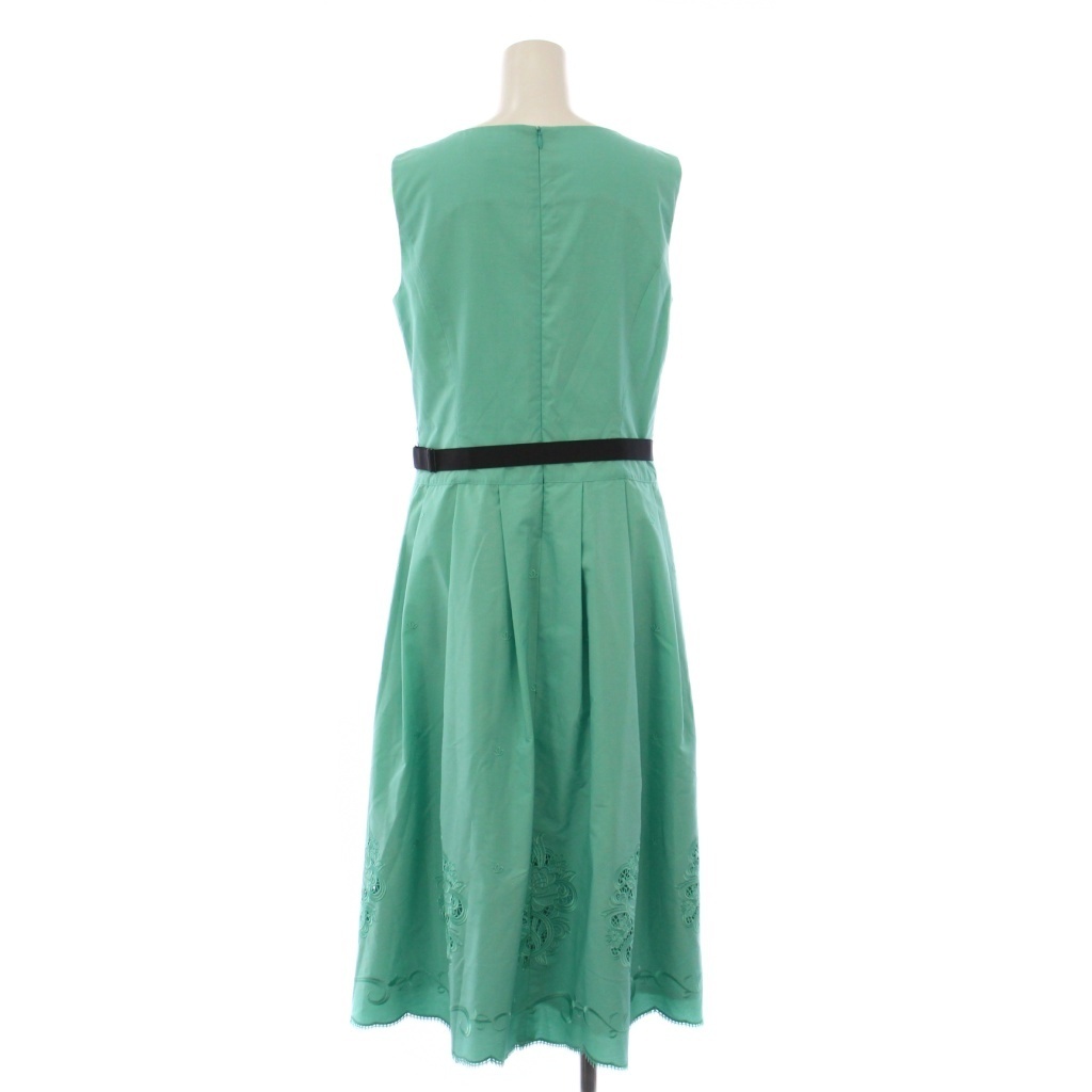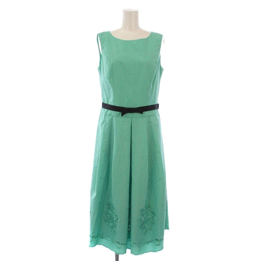 エムズグレイシー M'S GRACY 裾刺繍タックワンピ―ス フレア ミモレ ロング ノースリーブ クルーネック 38 緑 グリーン SF-411349
