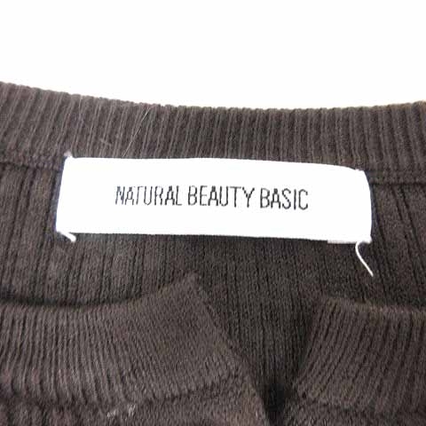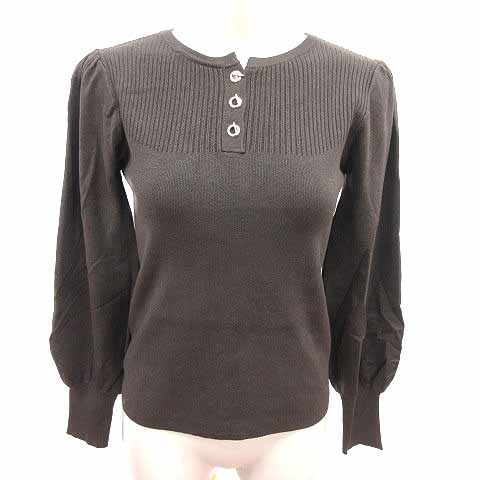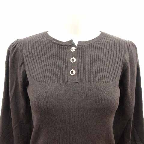 ナチュラルビューティーベーシック NATURAL BEAUTY BASIC ニット カットソー ヘンリーネック 長袖 M こげ茶 ダークブラウン /YK レディース