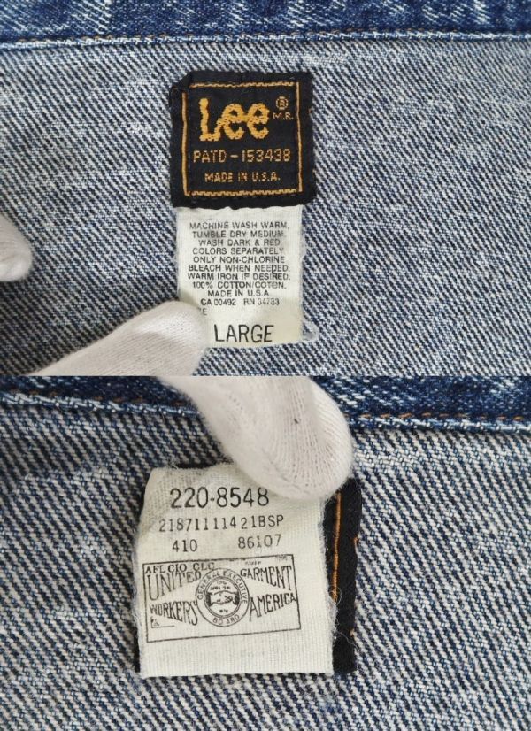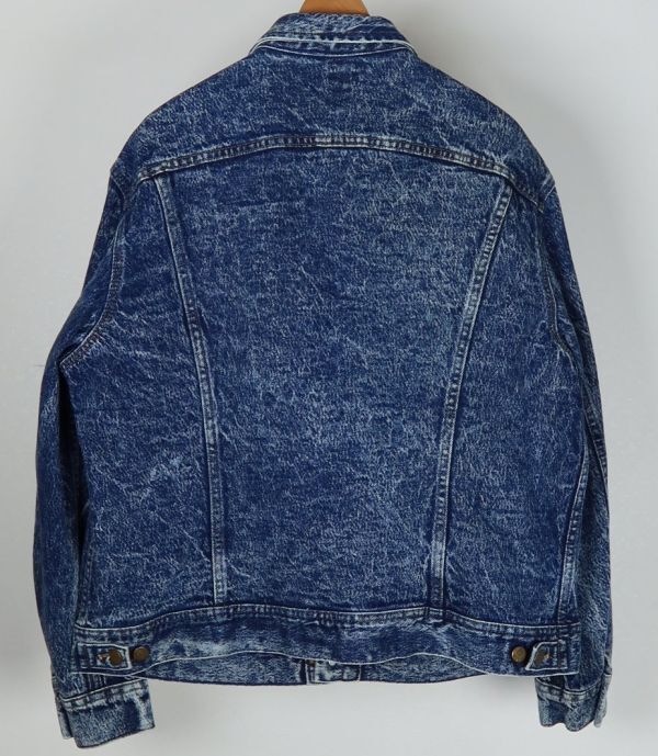 LEE PATD-153438 acid wash denim trucker jacket LARGE USA製 リー アシッド ウォッシュ デニム トラッカージャケット 80S <色> 画像を参考にお願いします <素材> 100%COTTON <サイズ> LARGE <寸法> 肩幅54身幅62着丈63.5袖丈63(単位:㎝) <商品状態> 若干の使用感はございますが綺麗なお品です。 <備考> 1980年代位、USA製、アシッドウォッシュ加工モデル、個体差がある中で綺麗に色落ちしています。 ■支払方法 YAHOOかんたん決済で落札価格+送料をお支払いください。 ■発送詳細 佐川急便、送料全国一律900円
