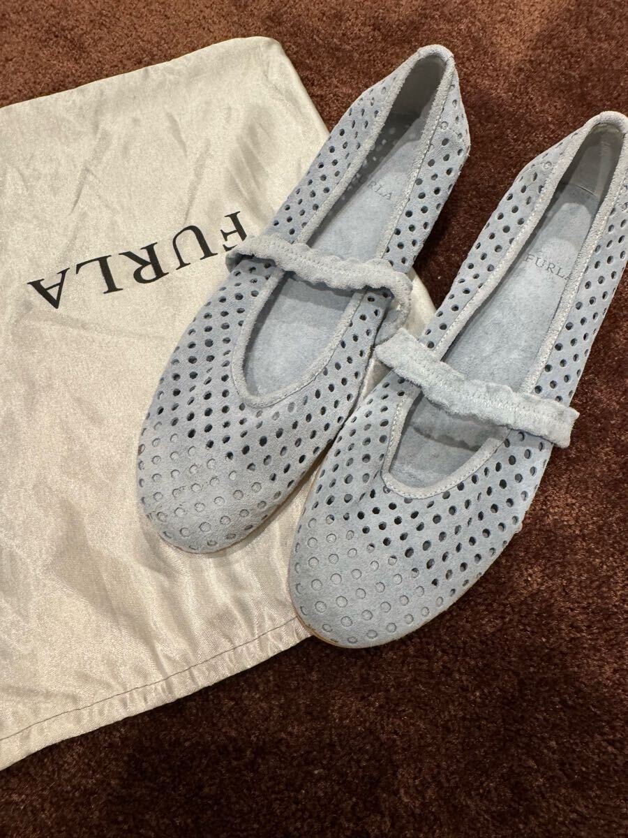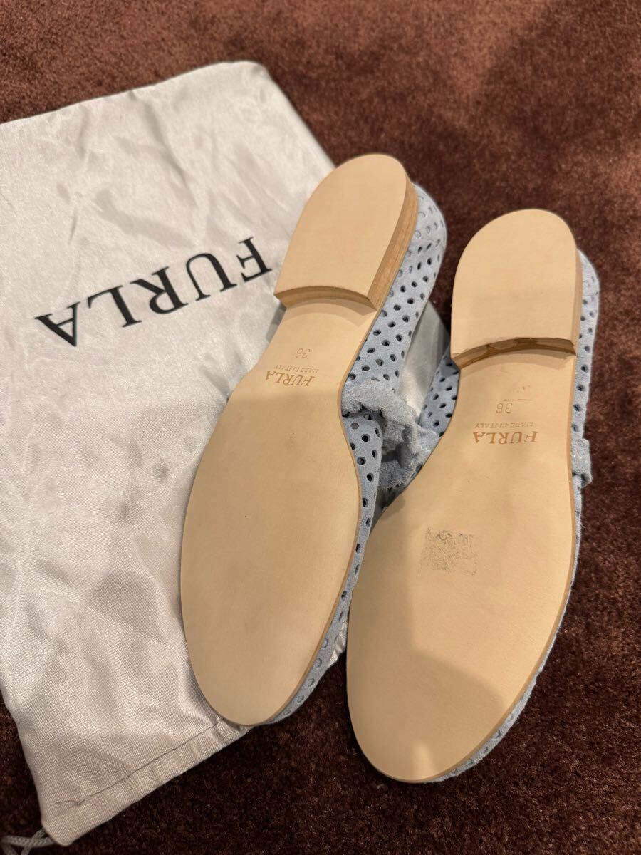 新品級 未使用 フルラ Furla スウェード 本革 レザー フラットシューズ ブルー パンプス