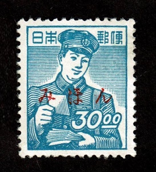 みほん字入り 1951年 昭和すかしなし切手 郵便配達 30.00円 糊落ち
