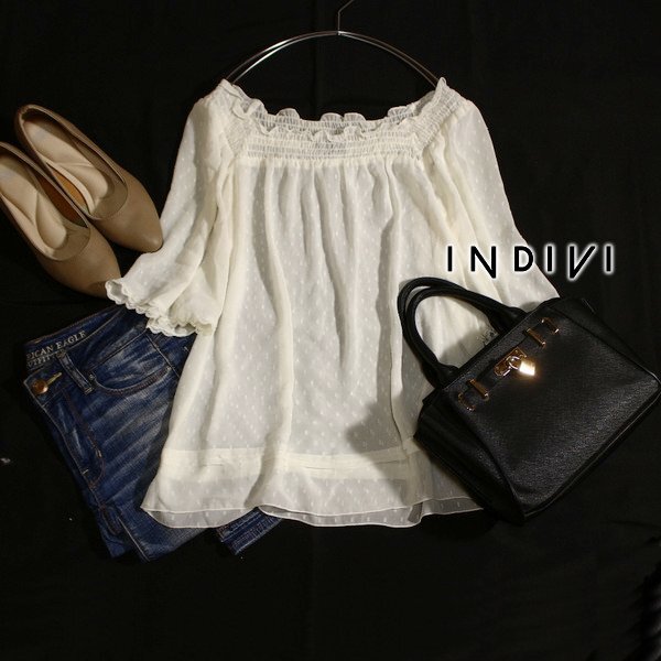 美品 INDIVI インディヴィ 可愛い カットジャガード シフォン カットソー 38号 M 春 夏 25A08