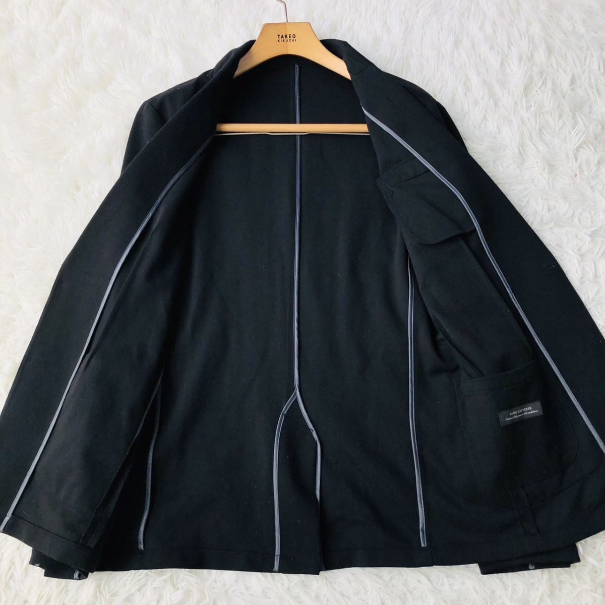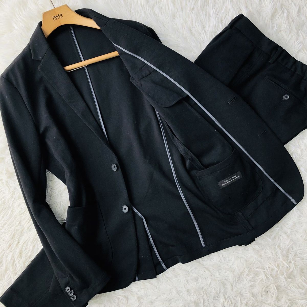 NANO UNIVERSE (ナノユニバース)スーツ セットアップ テーラードジャケット L ブラック SOLOTEX ストレッチ センターベンド 101
