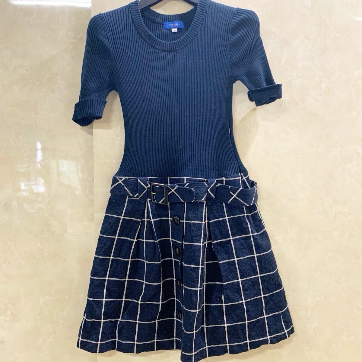 商品名:BLUE LABEL CRESTBRIDGE ブルーレーベル サイズ36クレストブリッジ ドッキングニットワンピース チェック【ED2014】