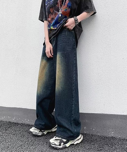 参考商品名:ブラスト加工 ワイドデニムパンツ