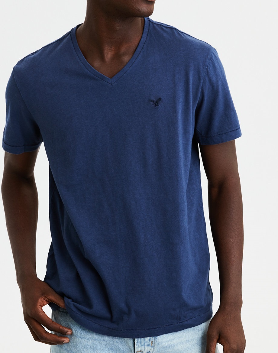 ラスト!!◇◆AE/アメリカンイーグル / AEロゴVネックスラブTシャツ / US L / Navy /新品