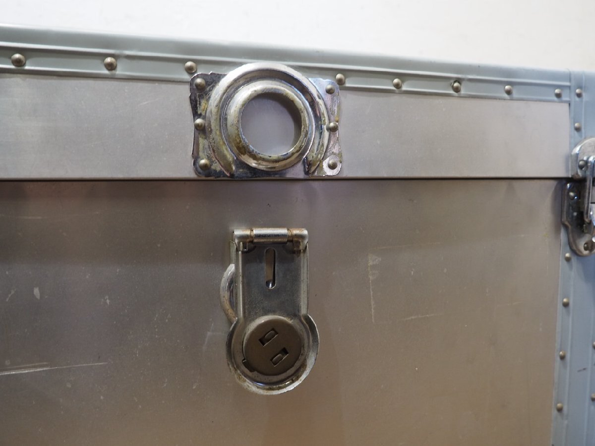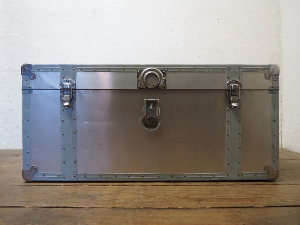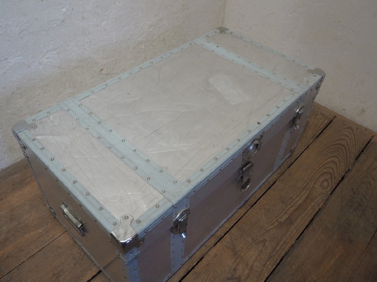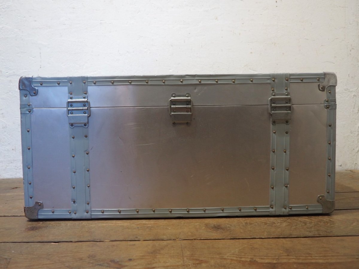タU0235◆H37×W81×D43(cm)◆ビンテージ◆無骨な大きいアルミトランク◆工業系 収納ケース センターテーブル レトロ インダストリアルK松