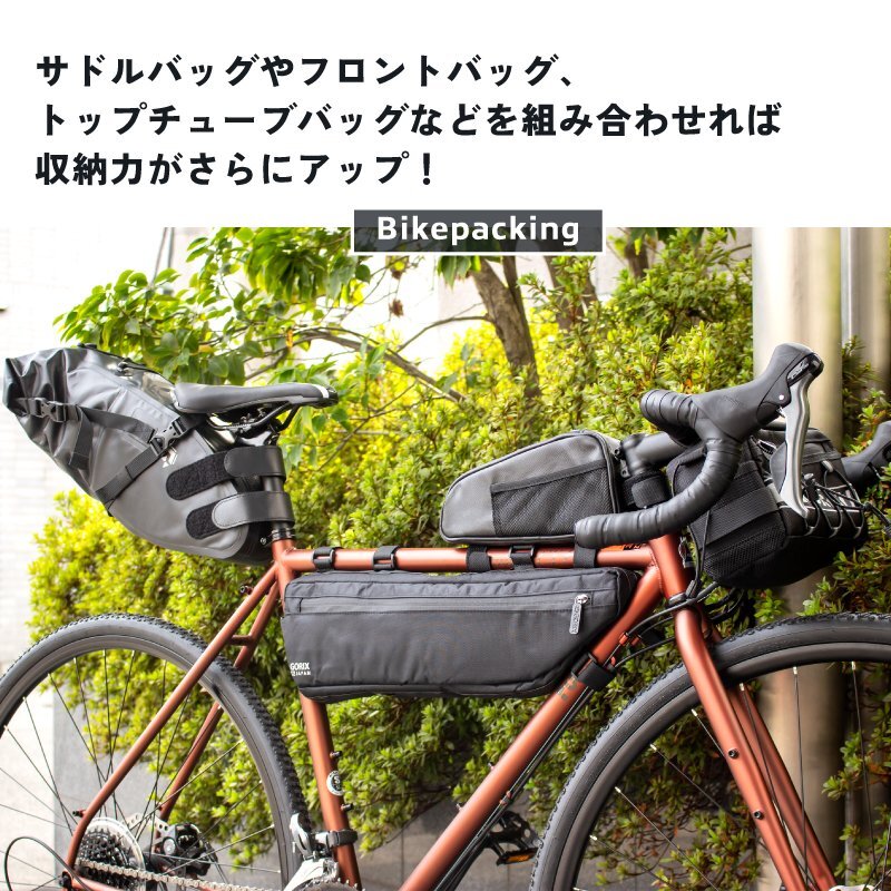 ツーリングや長距離のロングライド、自転車旅、普段の街乗り、自転車通勤など様々なシーンで大活躍する便利なバッグです。 他のバッグと組合せてサブバッグとしても重宝します。 見た目以上に沢山の荷物が入る大容量の3.5L! シンプルカジュアルなデザインでどんなフレームにもぴったり。 撥水加工の生地と防水ジッパーを採用。 [デザイン] シンプルでブラックはどんな自転車にもマッチ。 カジュアルで様々なバッグとも組合せしやすい! [サイズ] フレームの空きスペースを有効活用。フレームバッグは長めのサイズで長い携帯ポンプなども収納可能。 幅広い物を収納する事ができます。ペダリングの邪魔にならない幅サイズ。 [日常撥水レベル] 全体に撥水加工を施し短時間の弱い雨などに耐えれます。 防水ファスナー採用し隙間から入る水の侵入を阻止します。 ※撥水加工で完全防水ではございません。 [収納力] 最大容量3.5L。水筒やチューブや鍵、工具や軍手、折畳傘、薄手のウィンドブレーカーなど入る。 大きく開く事で取出しがしやすくまた中身も確認しやすい! 反対側のサブポケットは薄めのアイテムを収納するのに最適なポケットを完備。 スマホなどの収納に! [ベルト穴] 自転車の装着に合わせて使用本数や場所を変更できるベルト穴。 固定箇所を増やして安定させる事ができる。 ベルクロなのでスムーズに取付け作業ができる。 [組合わせて] サドルバッグやフロントバッグ、トップチューブバッグなどを組み合わせれば収納力がさらにアップ! [夜間反射ロゴ] 夜間反射機能・事故防止などの安全対策に。暗闇でライト等の光に反射して存在をアピールし追突などのリスクを軽減。 無いよりも視認性が向上します。 商品内容自転車用フレームバッグ サイズ長さ上/下47/36cm、縦3.5~11.5cm、幅8cm 最大容量約3.5L 材質ナイロン生地 重量約260g 附属ベルト取付可能径約φ3-5cm 自転車に取付位置フレーム 防水仕様日常撥水レベル、防水ファスナー※完全防水ではありません。 ※自転車のフレームサイズと合うか事前にお確かめください。 商品は入荷によりキズがある場合があります。 傷や細かい汚れが気になる方や神経質な方は入札をお控え下さい。 入荷時期により予告無く一部仕様変更する場合が有ります。 カラーはディスプレイ種類環境等により実物と異なって見える場合がございます。 |