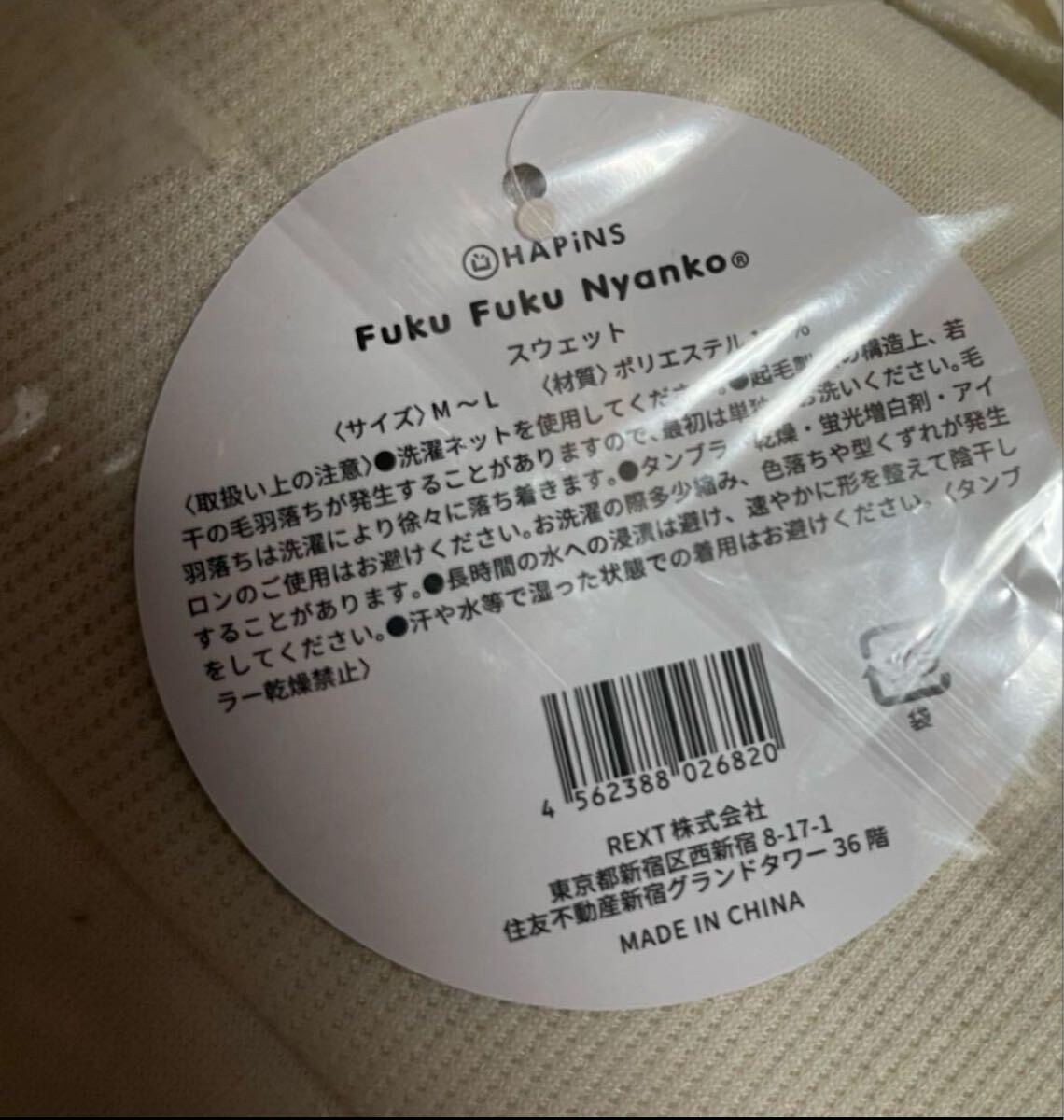 HAPiNSのふくふくにゃんこのスウェットを出品致します