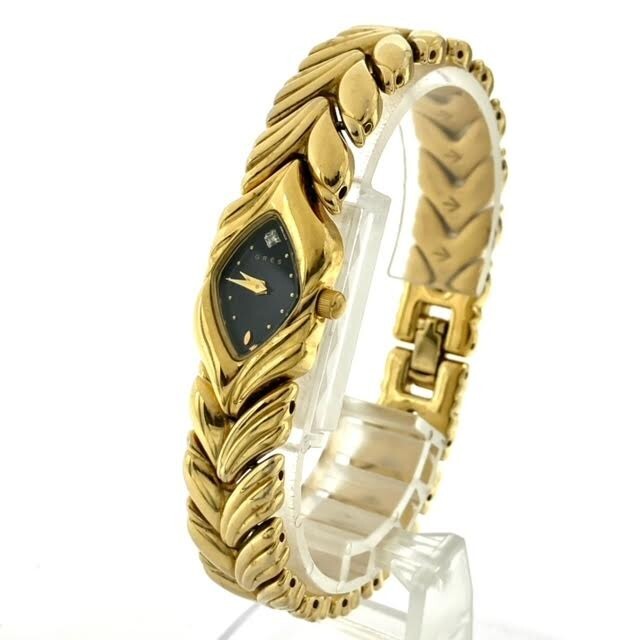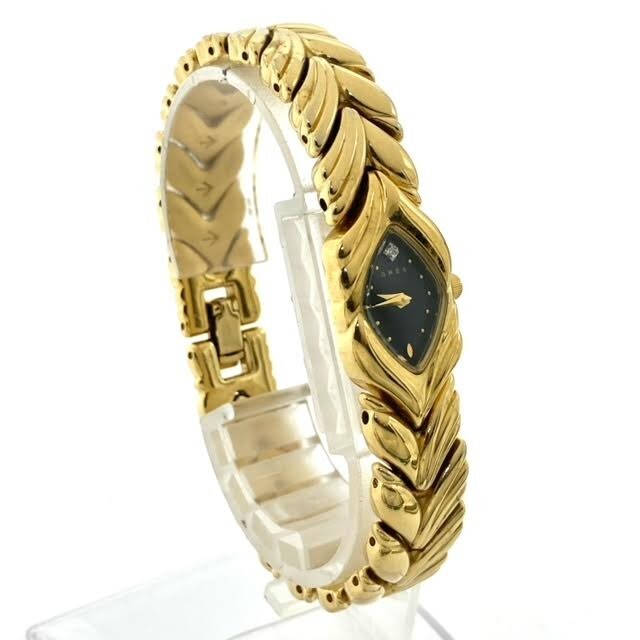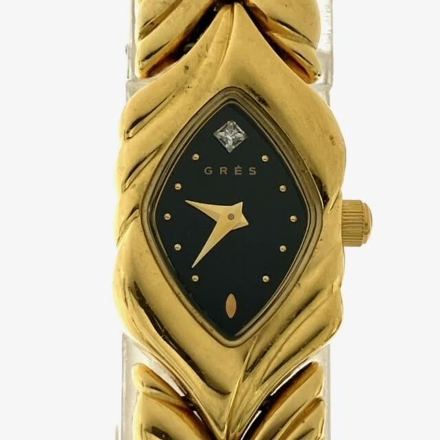 仙82 GRES 腕時計 クォーツ ブレスレットウォッチ アナログ 2針 箱付き グレ QZ レディース ブラック文字盤 ゴールドカラー