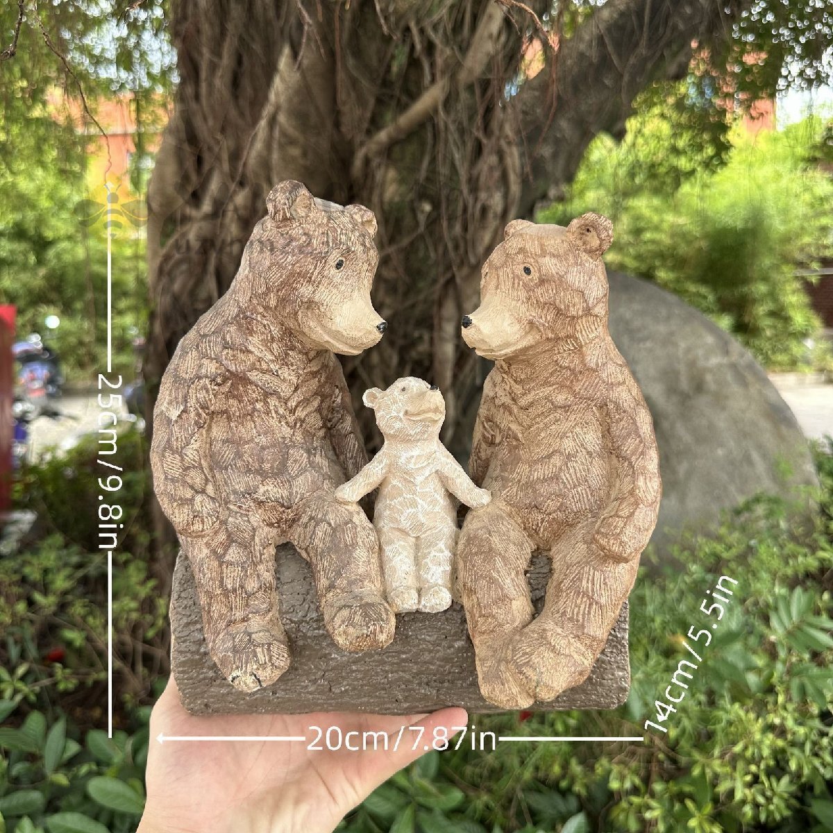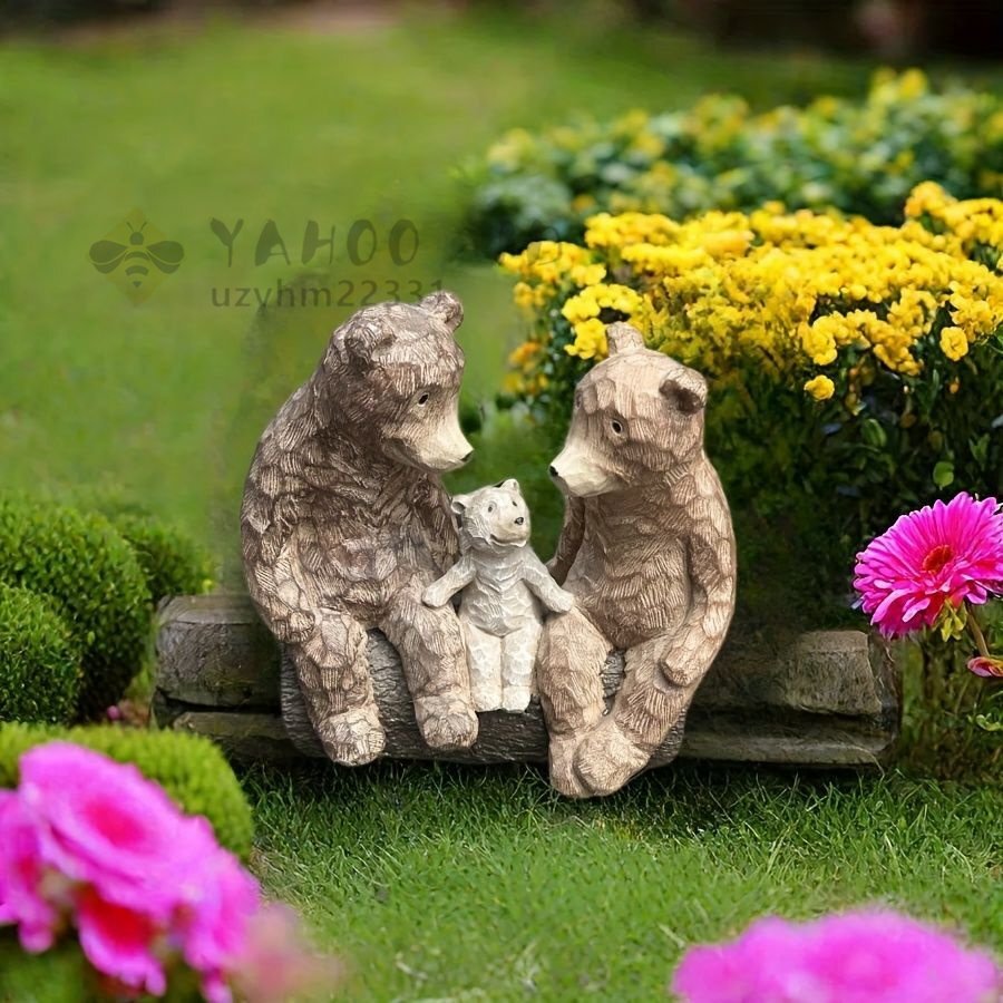 置物やオブジェとしても魅力的な「ベンチに座っているクマの親子」は、あなたの庭や室内を温かみのある雰囲気に彩ります。木彫り風のデザインが特徴的で、リアルな仕上がりが印象的。樹脂素材を使用しているため、屋外での使用にも耐久性があり、天候を気にせず楽しむことができます。玄関やリビング、ダイニングなど、さまざまな場所でインテリアとして活躍します。