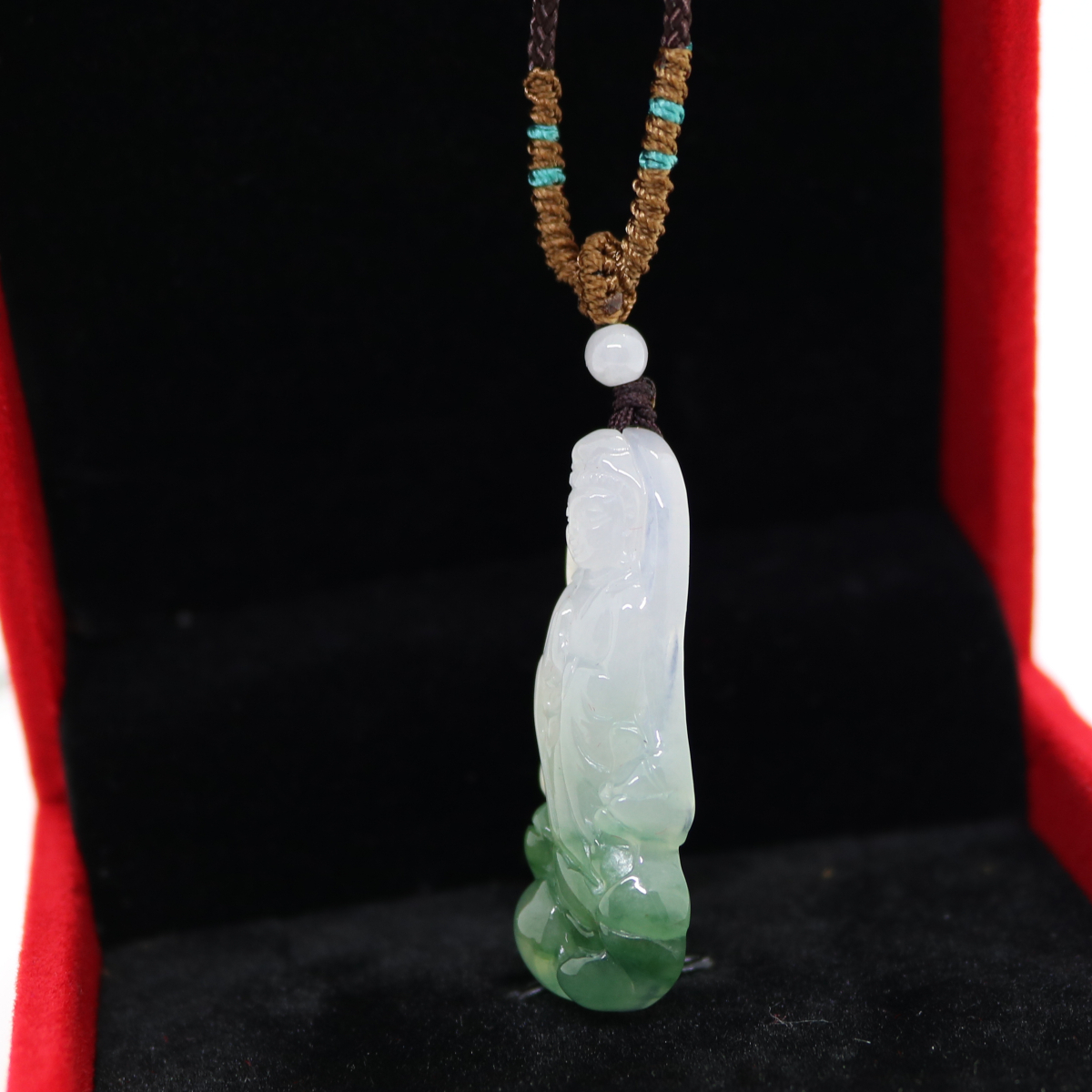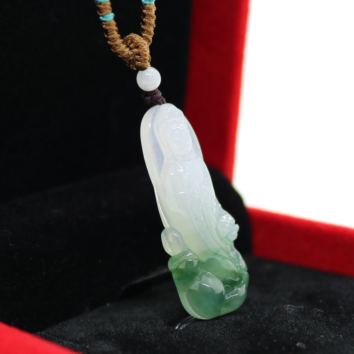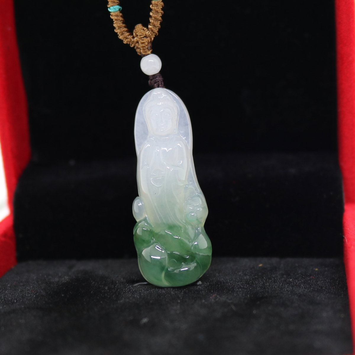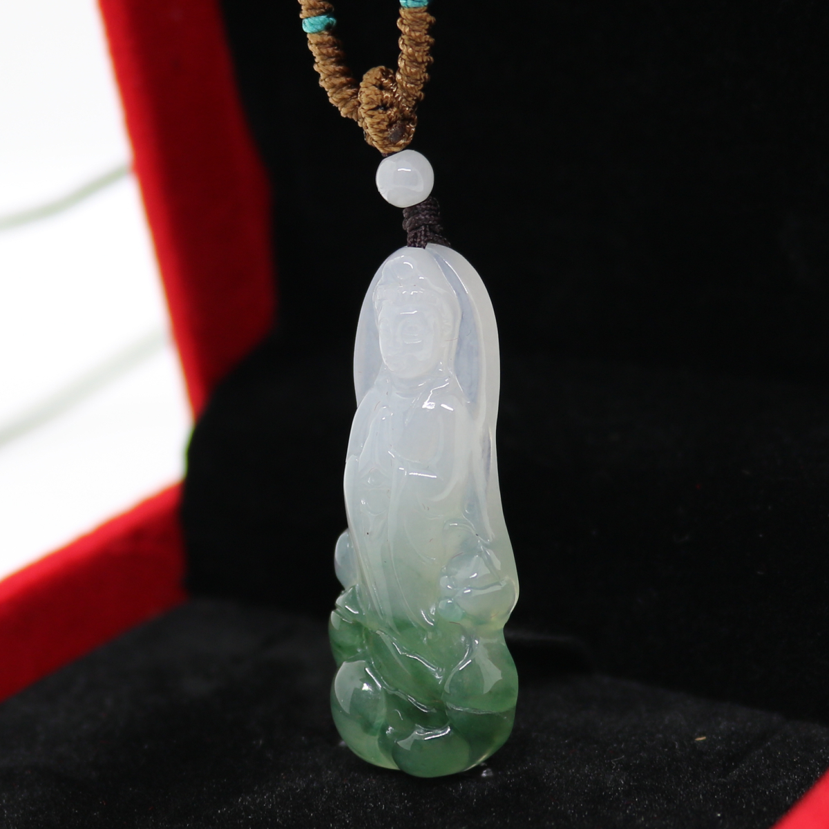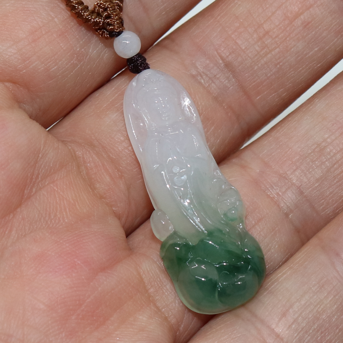 立像 観音菩薩 ミャンマー天然翡翠 ジェイダイト ヒスイ ペンダントヘッド A貨 天然石 ネックレス 送料無料 お守り