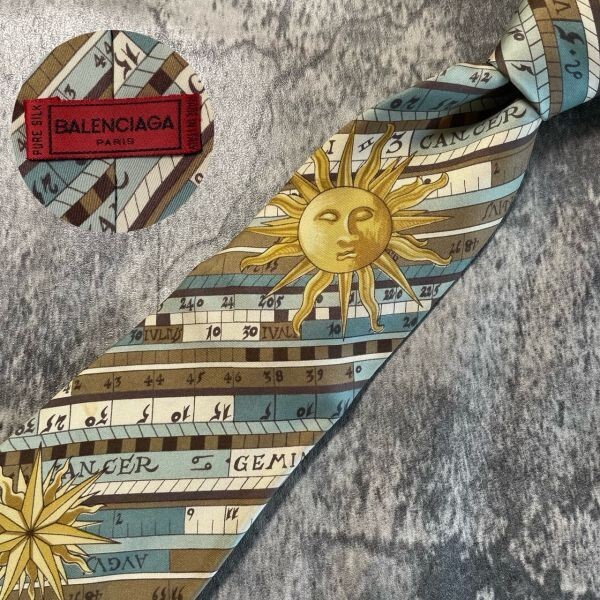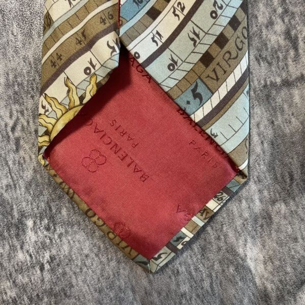 [KN297] BALENCIAGA エメグリーン ベージュ  シルク ネクタイ