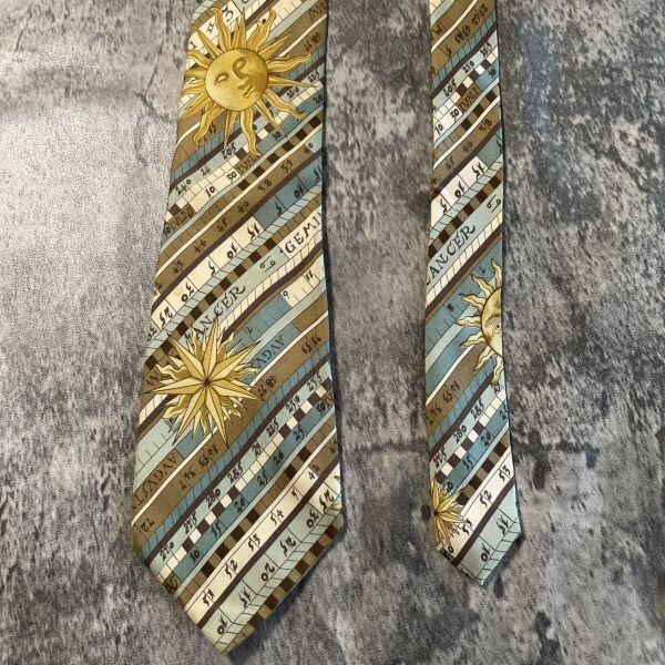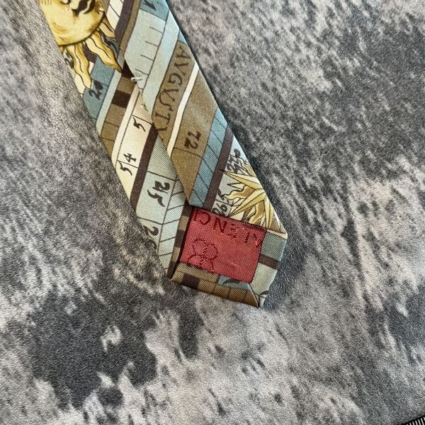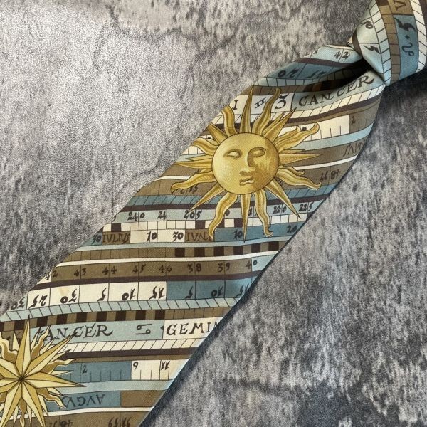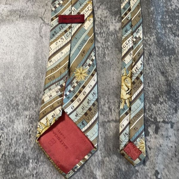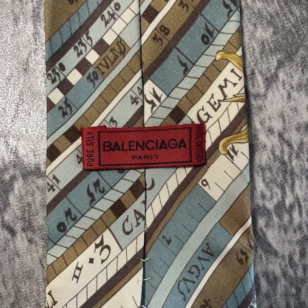 [KN297] BALENCIAGA エメグリーン ベージュ シルク ネクタイ