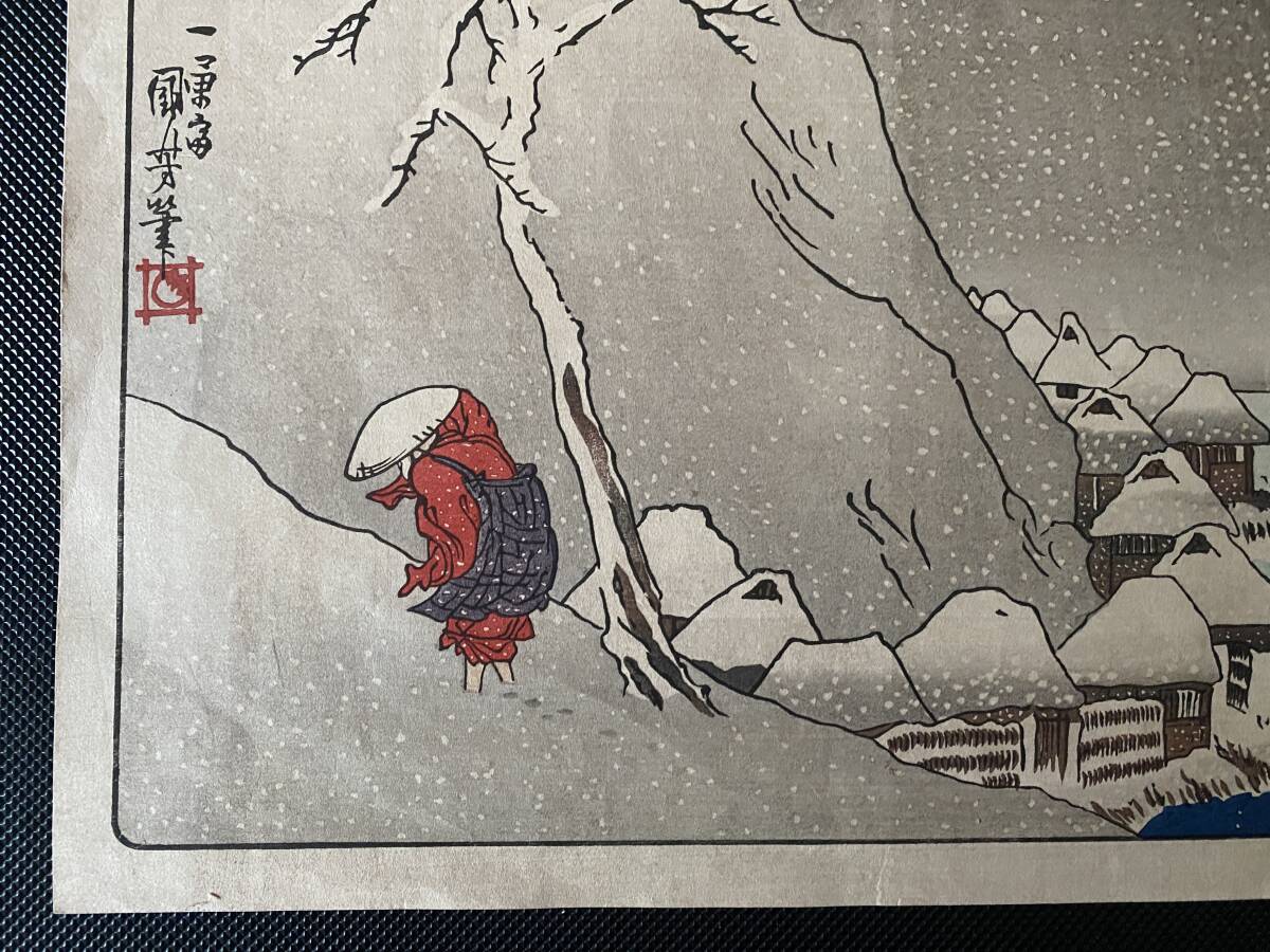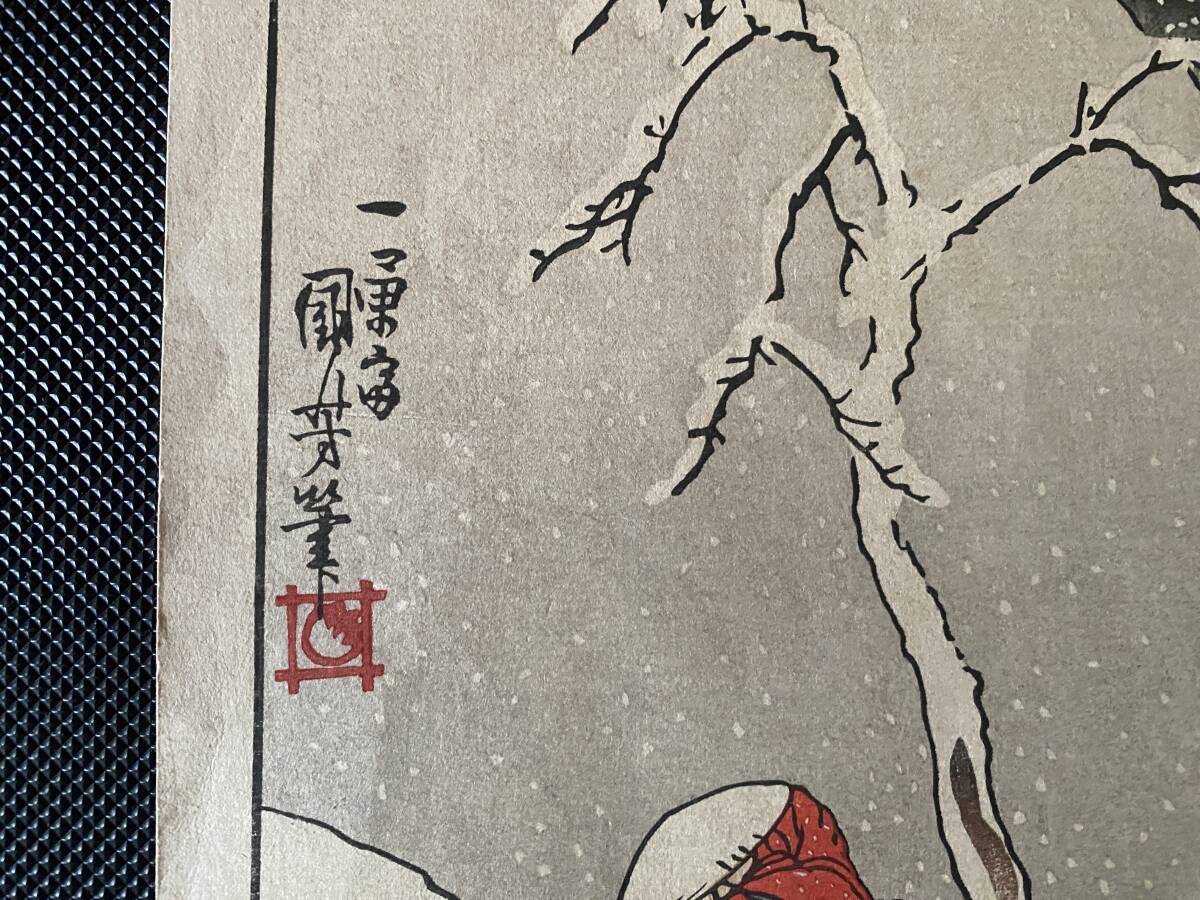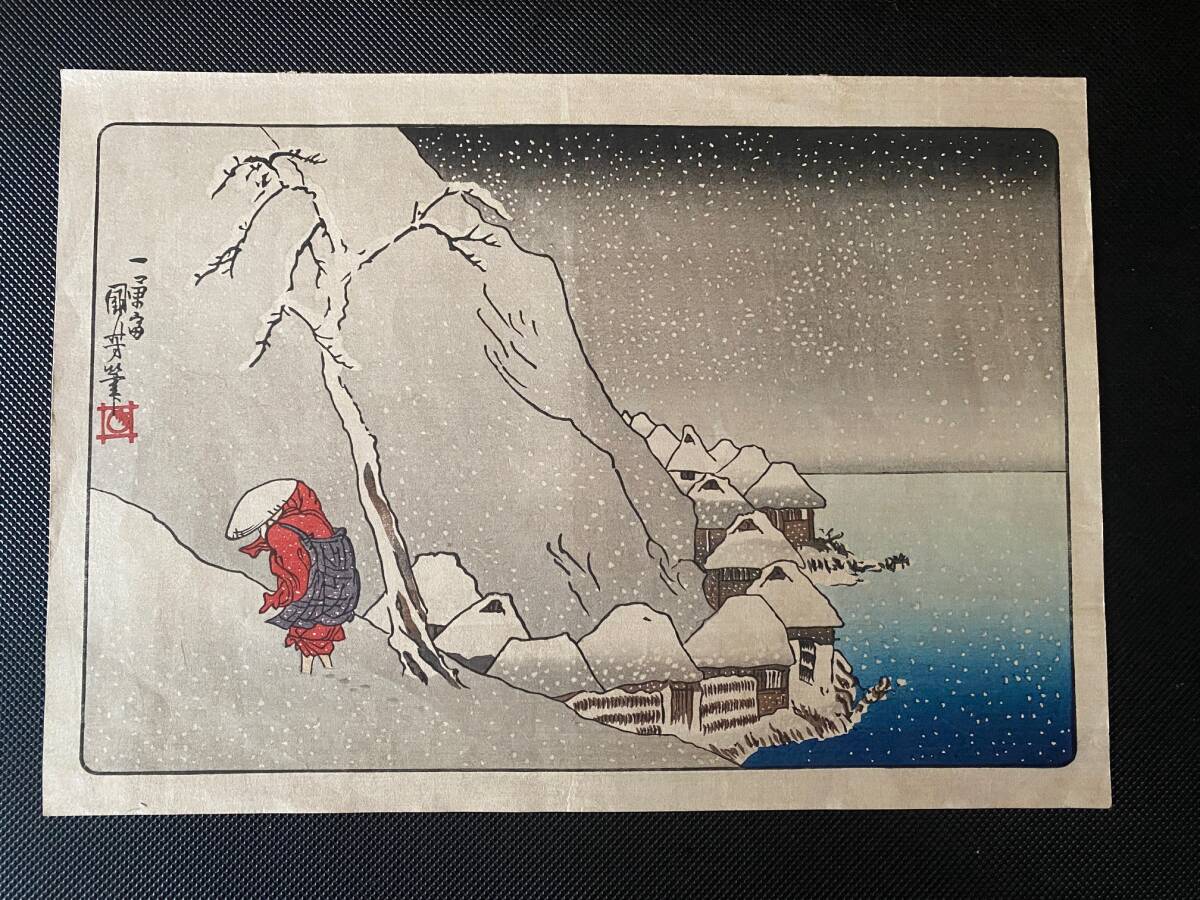 一勇齋圀芳 歌川国芳画 「佐州塚原雪中」 復刻 木版画 高祖御一代略図より 現状品