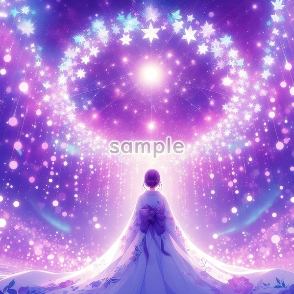 | 巫女 七夕 天の川 オリジナル絵イラスト 232P Miko Tanabata milkyway Original painting art picture image material |