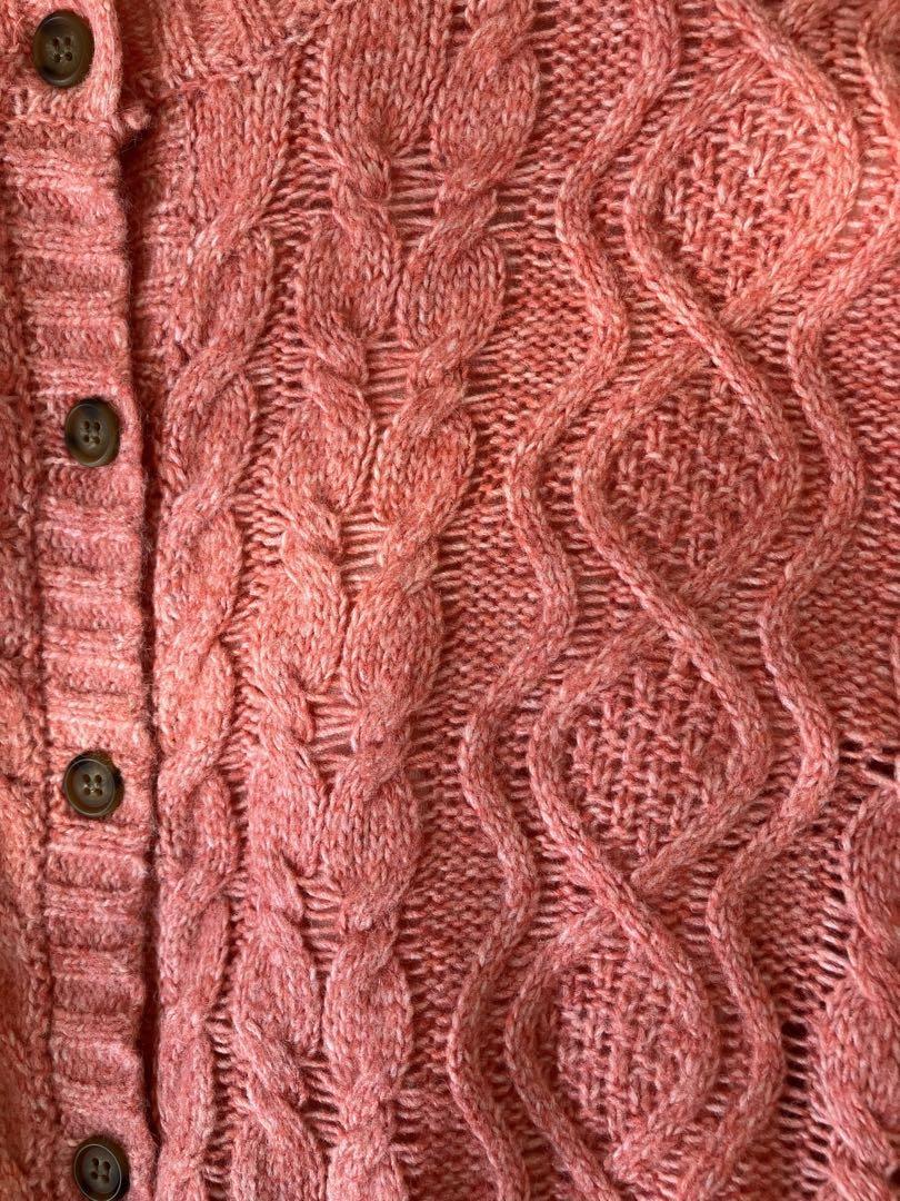 立体感のあるケーブル編みがアクセントに映えるニット。