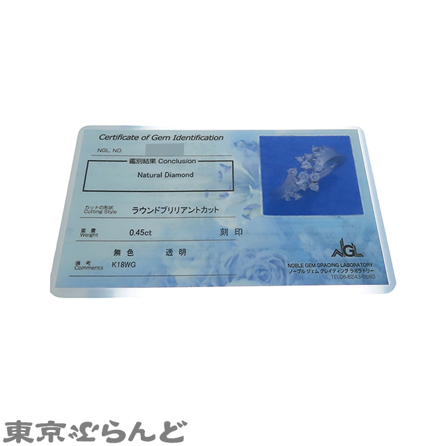 101800132 ノーブランド ダイヤモンド リング ホワイトゴールド K18WG ダイヤモンド 12号相当 0.45ct 鑑別書付き 指輪 レディース 仕上済