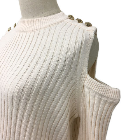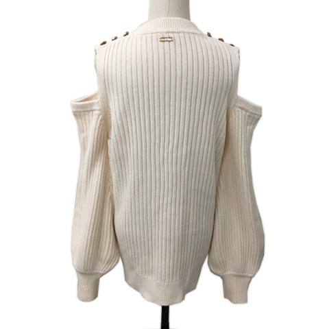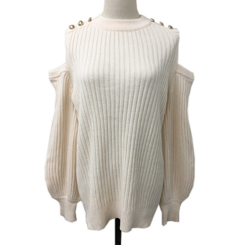 レディ Rady チュニック ニット ラウンドネック プルオーバー オープンショルダー リブ 無地 長袖 S ベージュ レディース
