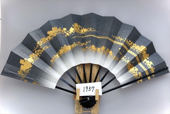 舞扇子 A1957 金小石ノギ並び 黒天ぼかしシルバー引き 【箱なし】
