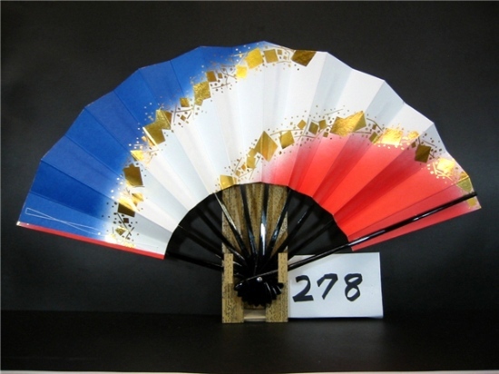 舞扇子 A278 青・朱両妻ぼかし 金箔小石 【箱なし】