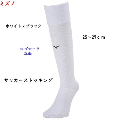 サッカーストッキング/サッカーソックス/ホワイト/白x黒/ミズノ/25~27cm/1870円即決