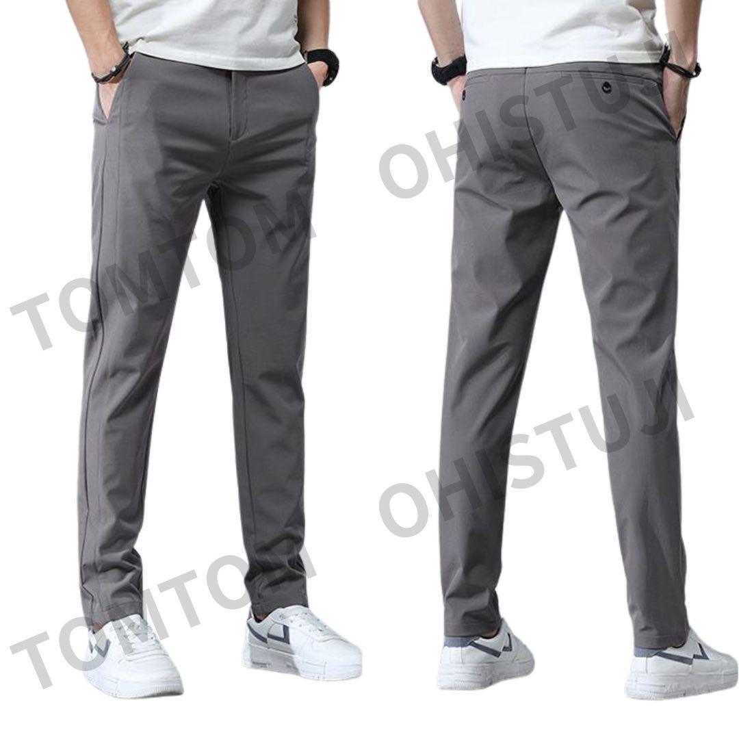 ビジネス オフィス カジュアル オフィカジ スラックス スタイリッシュ アイスシルク パンツ ブラック 黒 グレー スポーツ ゴルフ 散歩 シンプル 伸縮性 ストレッチ S M L XL 2XL