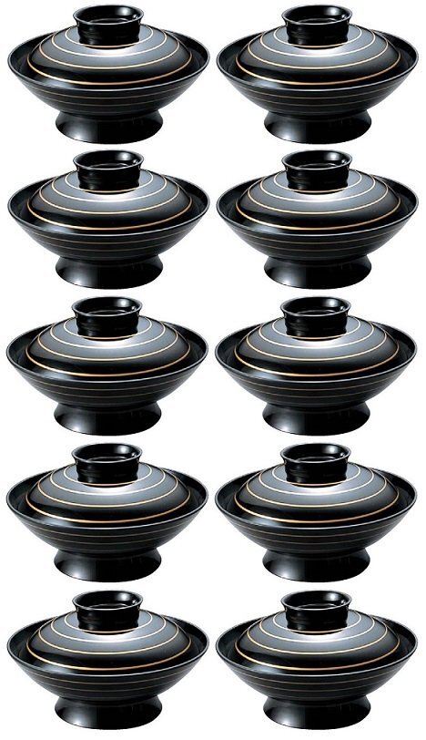 ★業務用漆器耐熱5.5寸御殿型煮物碗黒金ライン内黒10個越前塗食器洗浄機対応日本製新品
