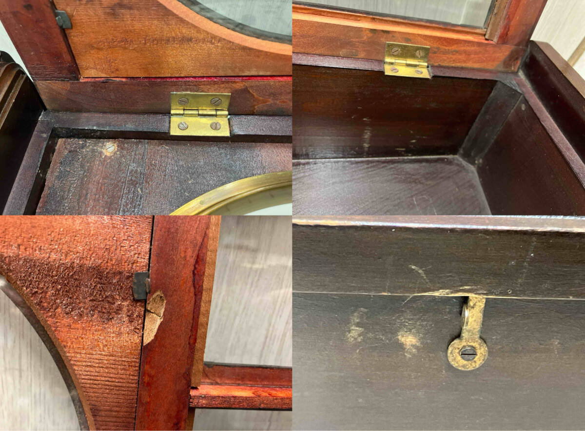 出品物は画像に写っている物が全てです。 縦73横 横31 奥行き14(約cm) 全体的にスレ傷汚れ埃の付着、カビのような付着物とカビ臭ありで、振り子が動いてる時に針が進むことと12時にボーンボーンと音が鳴ったこと以外は全て未チェックのため現状お渡しのジャンク出品とさせていただきます。 |