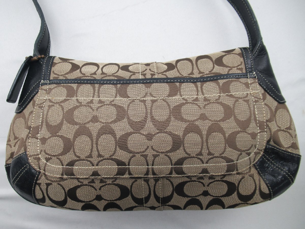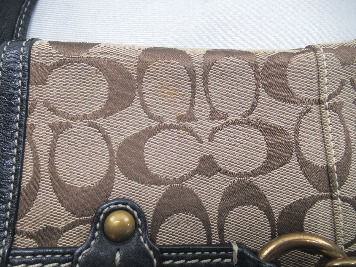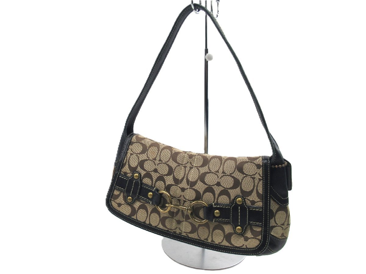 ★【B送900円】2201 COACH コーチ シグネチャー ワンショルダーバッグ ハンド キャンバス×レザー ロゴ総柄 ゴールド金具