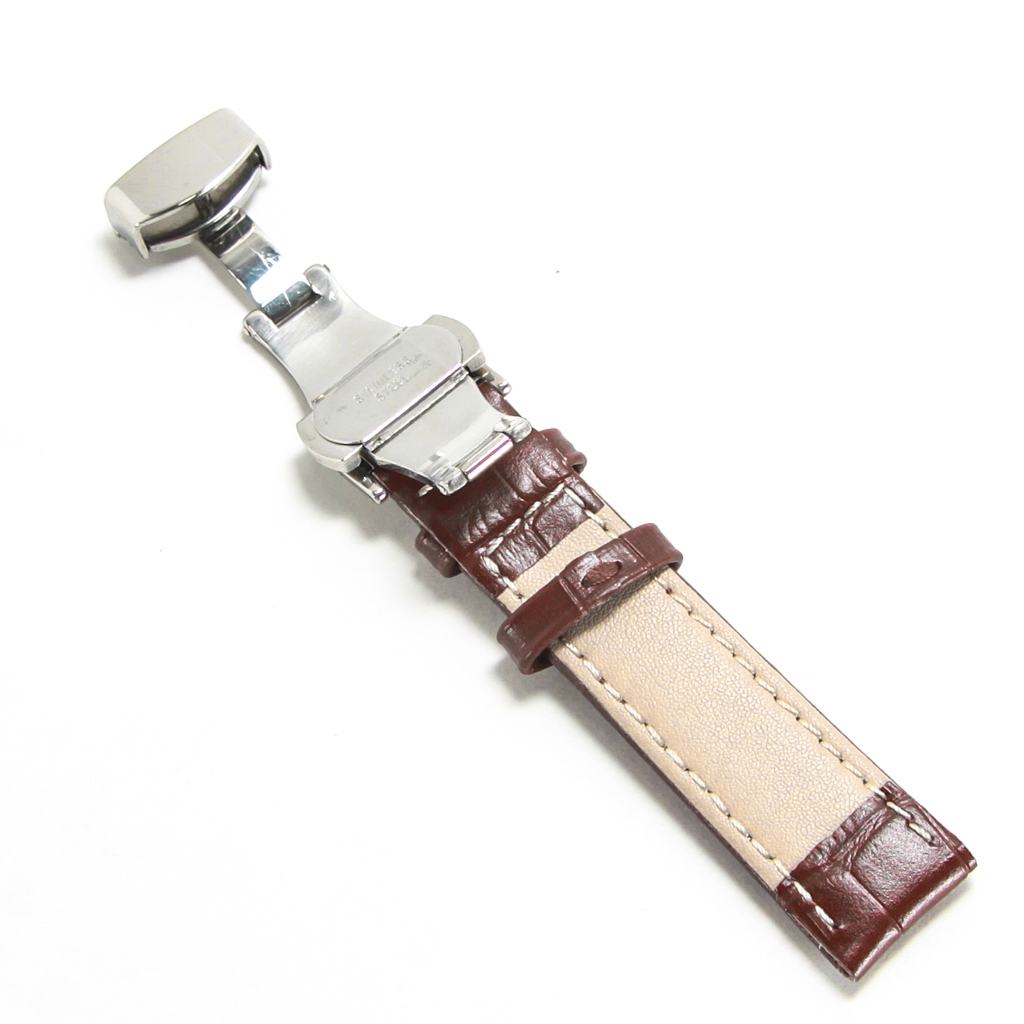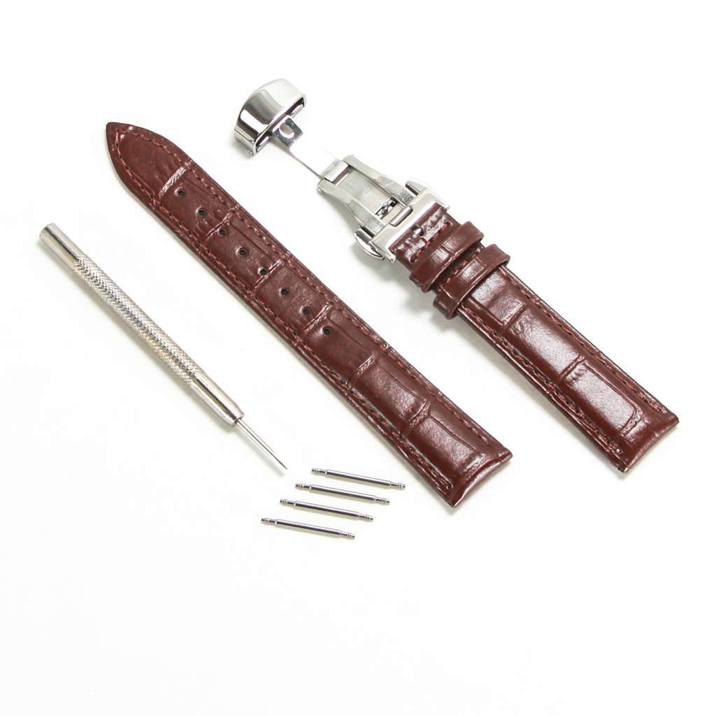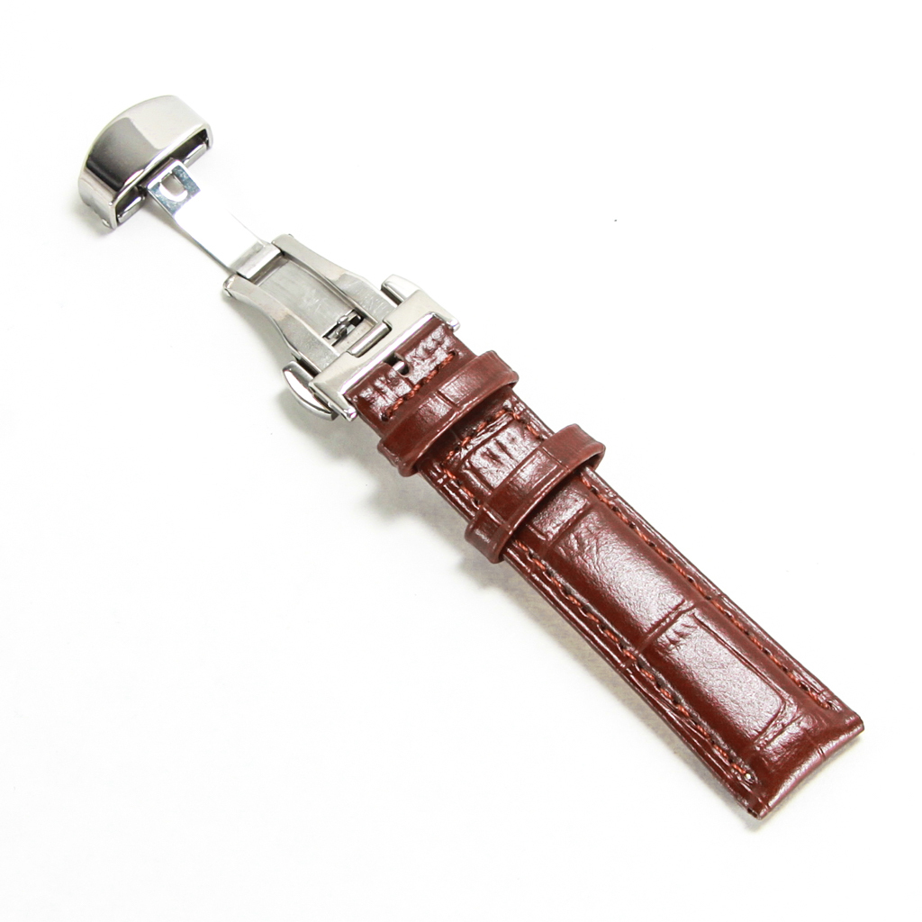 腕時計ベルト プッシュボタン開閉式Dバックル仕様 茶色 18mm