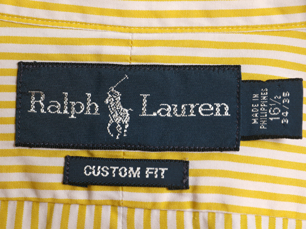 00年代オールド 人気ブランド RALPH LAUREN の長袖ボタンダウンシャツです。 現代的な細身のシルエットのカスタムフィットモデル 素材は、100% COTTON( コットン ) ハリのある比較的薄手の快適な年間を通して着て頂ける 着心地抜群の素材が使用されています。 ラルフローレン定番のボタンダウンスタイル 左胸に定番のワンポイントポニー刺繍 好配色イエロー× ホワイトの2トーンストライプ オックスフォード素材では見かける配色ですが この素材では見かける事の少ない爽やかなグッドカラー 使い勝手の良い、シンプルなグッドデザイン 丁寧な仕立て、綺麗なシルエットで 着ていただけるのは言うまでもありません スタイリッシュな人気のシルエット タウンユースはもちろん、カジュアルダウンした ビジネスシーンにも使用できる ラルフローレンのセンスと美学が伺える 1枚で様になる商品です。 |