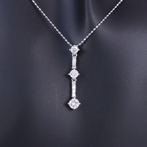 Aランク【ジュエリー】ダイヤモンドネックレス/3連/K18WG/Pt900/45cm/2.9g/0.45ct