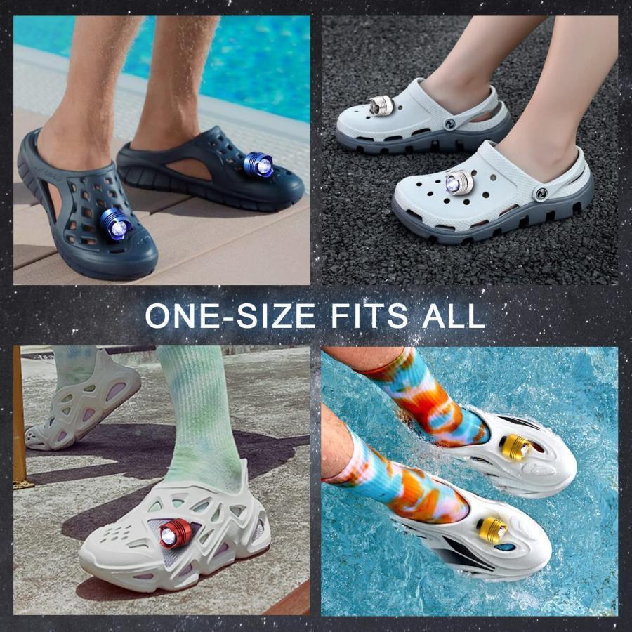 クロックスやスニーカーに取り付けて、夜間の歩行を助けます。