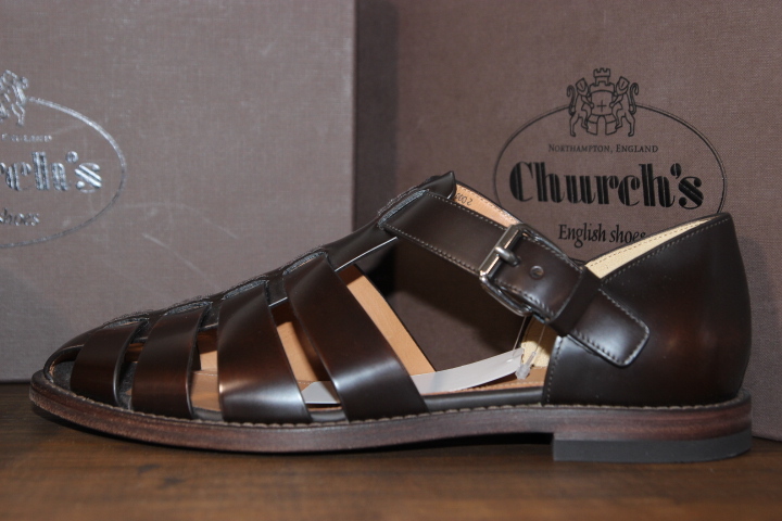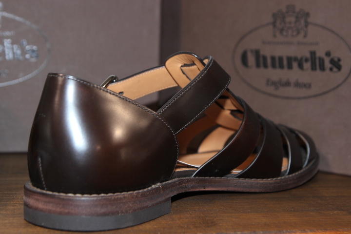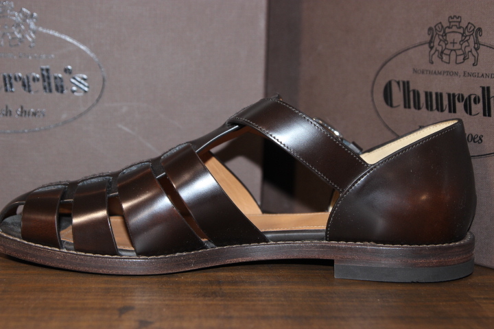 チャーチの代名詞、バインダーカーフを使用したフィッシャーマンサンダルです。