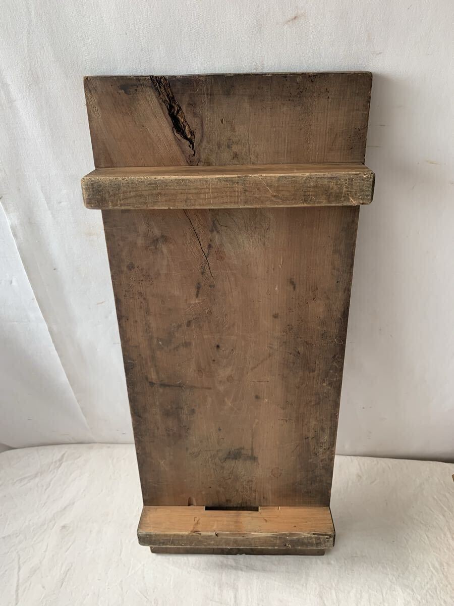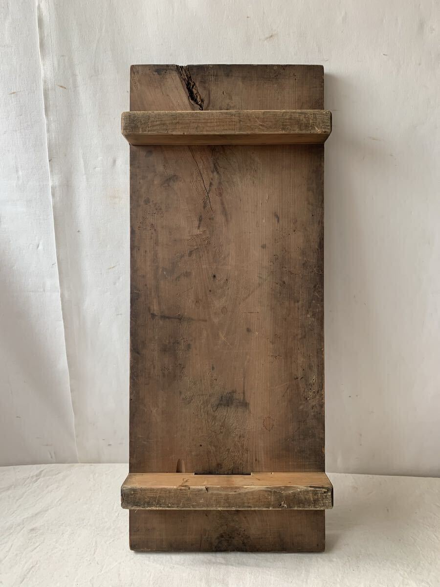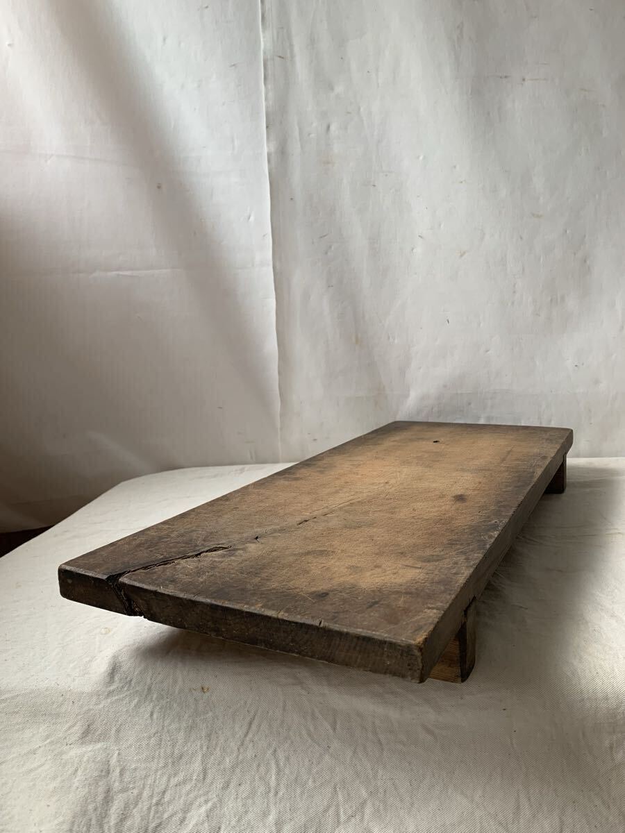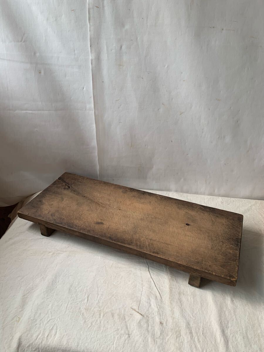 天板厚み約2.4cm 経年の雰囲気が素敵な無垢材の脚付一枚板です。壁などに飾ったり、花台や展示台としてお店やイベント出店時の什器として使って頂いても素敵だと思います。脚を外して一枚板として使っても良いかと思われます。