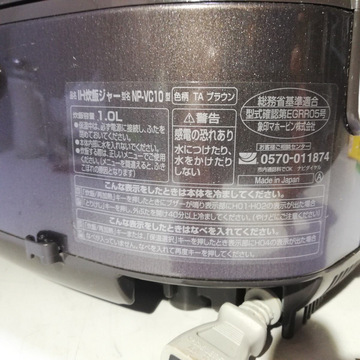 管382(中古現状、消毒除菌、即発送)NP-VC10 ZOJIRUSHI 象印 IH炊飯ジャー