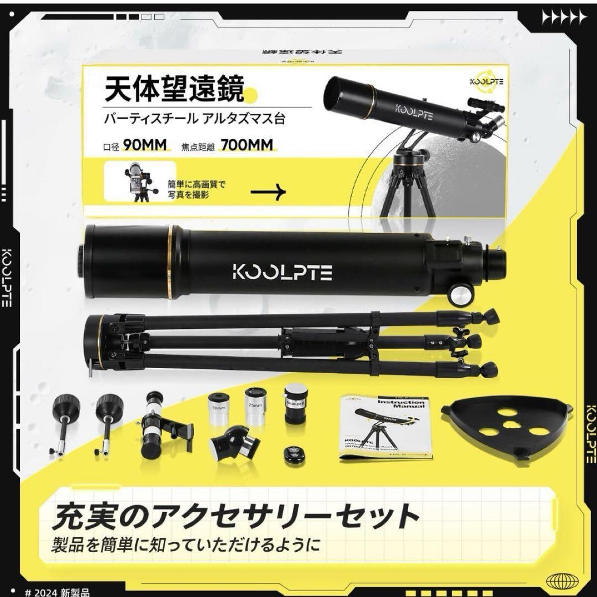 付属品電話アダプター, 三脚, 望遠鏡チューブ, ワイヤレスリモコン, 接眼レンズ x2