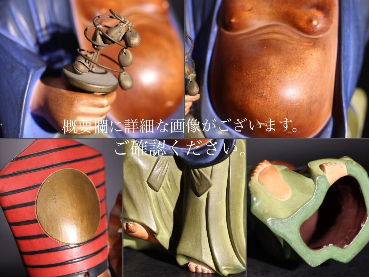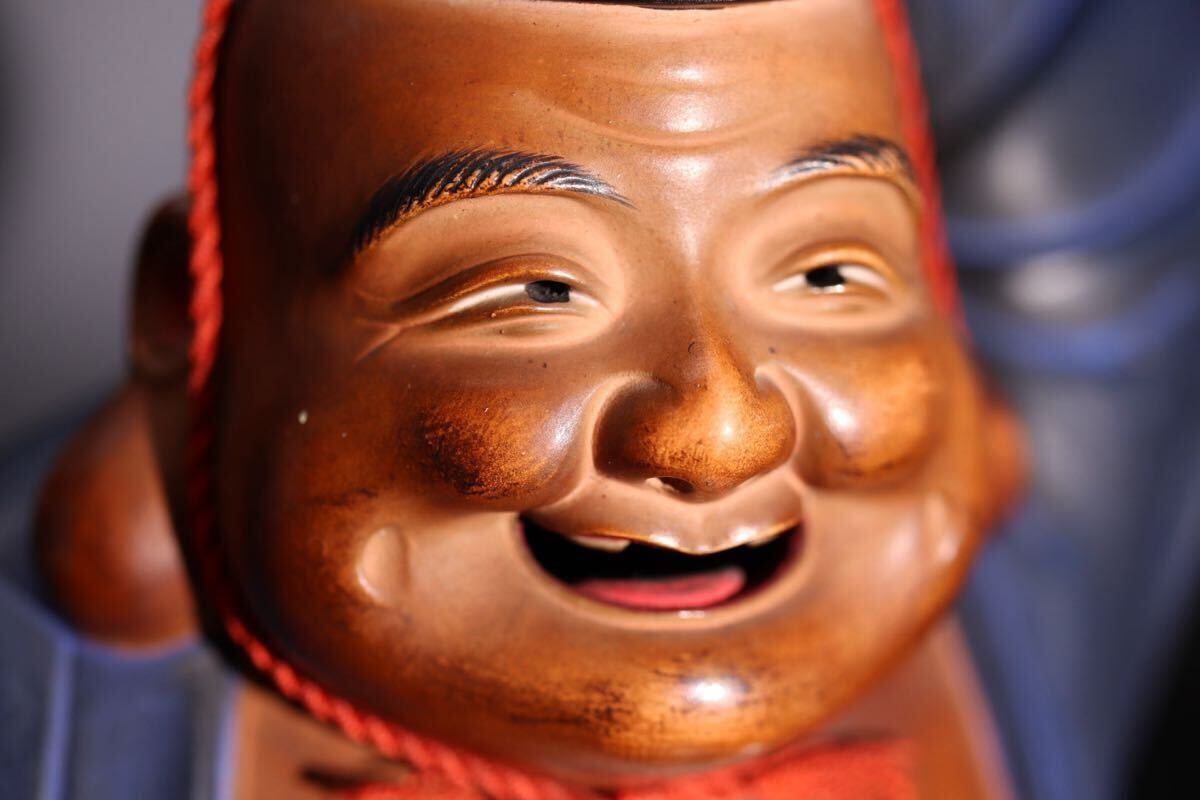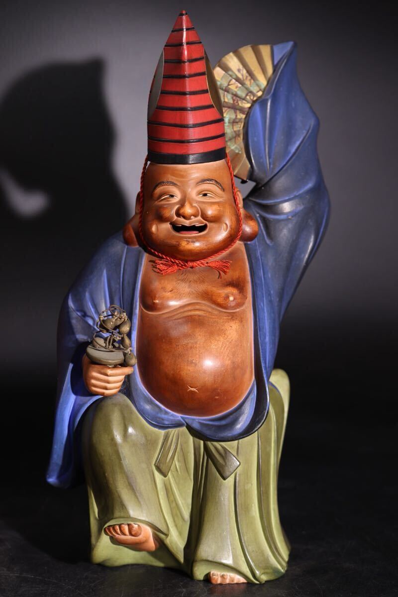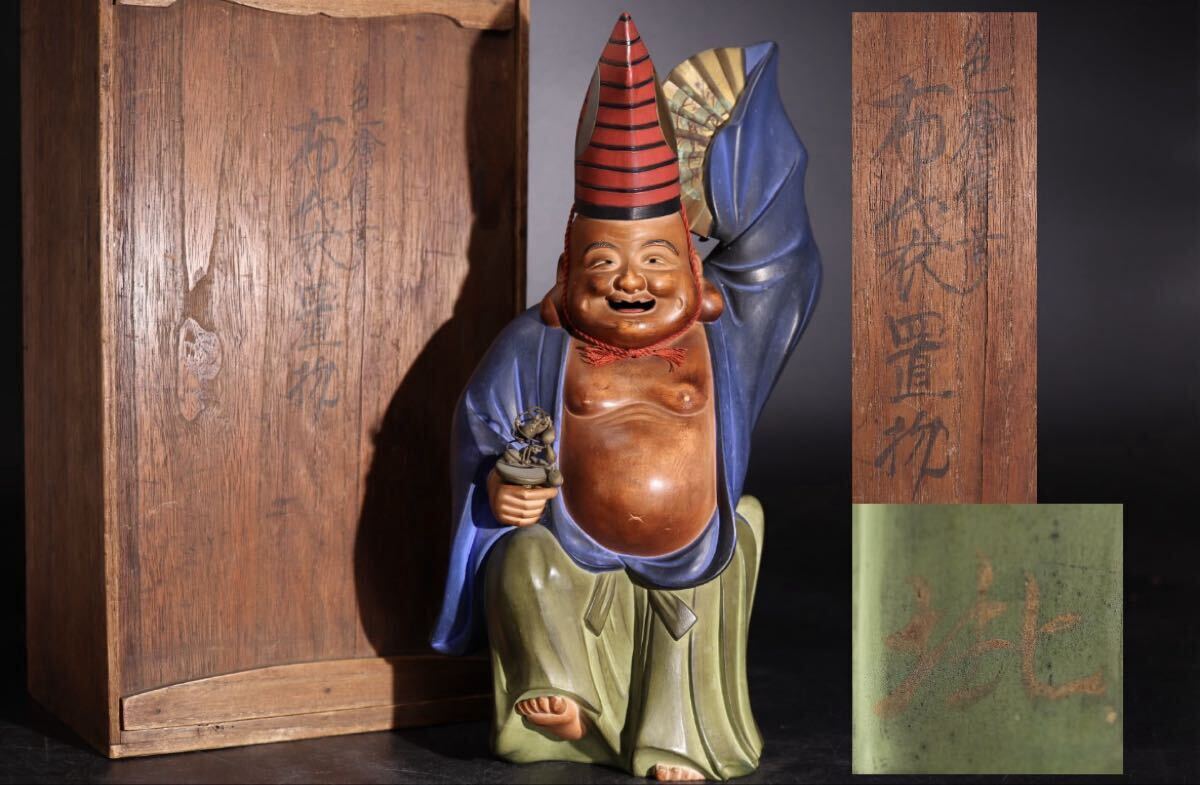 | 在銘 「 色絵 備前 布袋 置物 」 木箱付 / 備前焼 絵備前 彩色 仏教美術 仏像 煎茶飾 .G2260 |