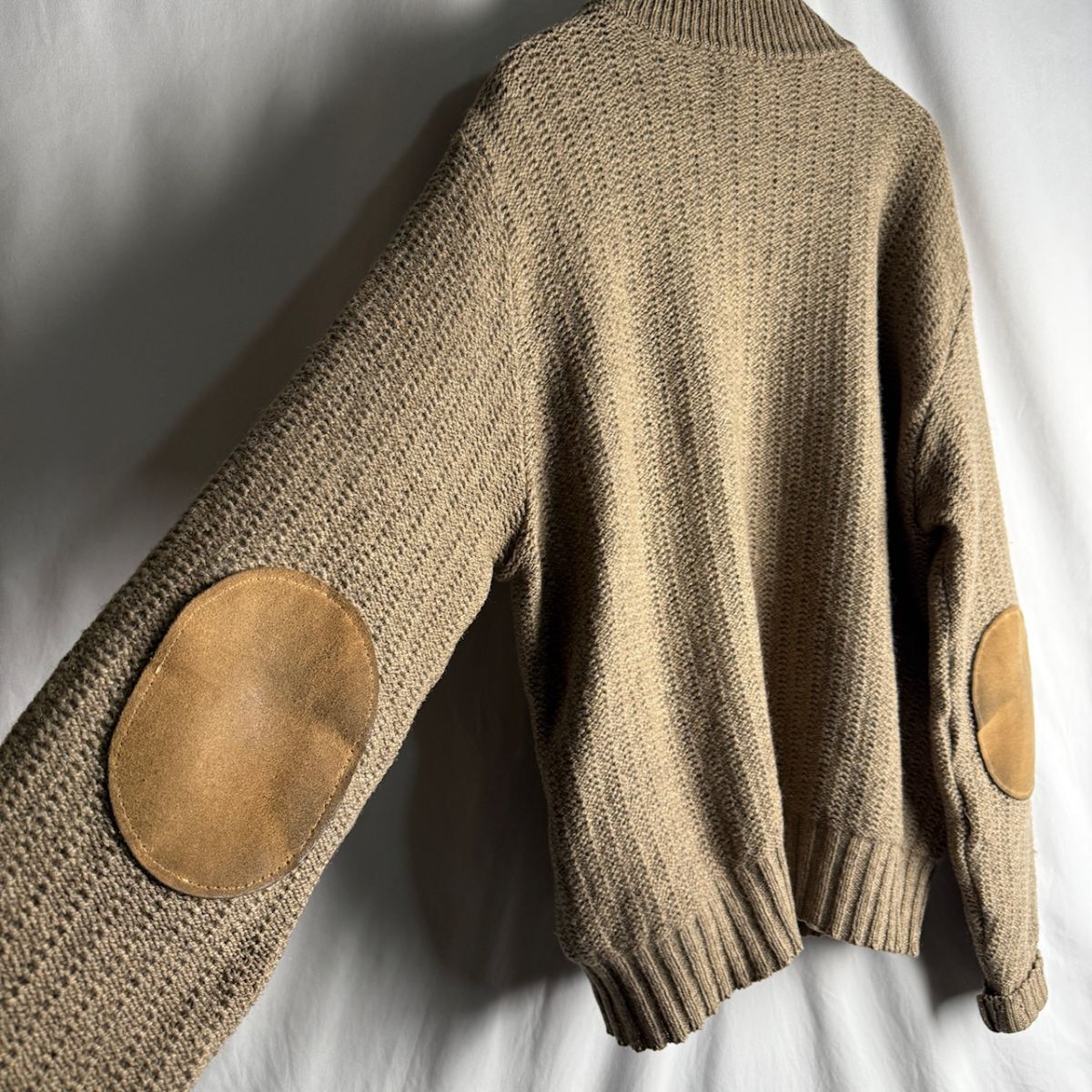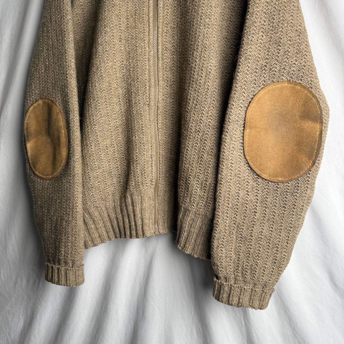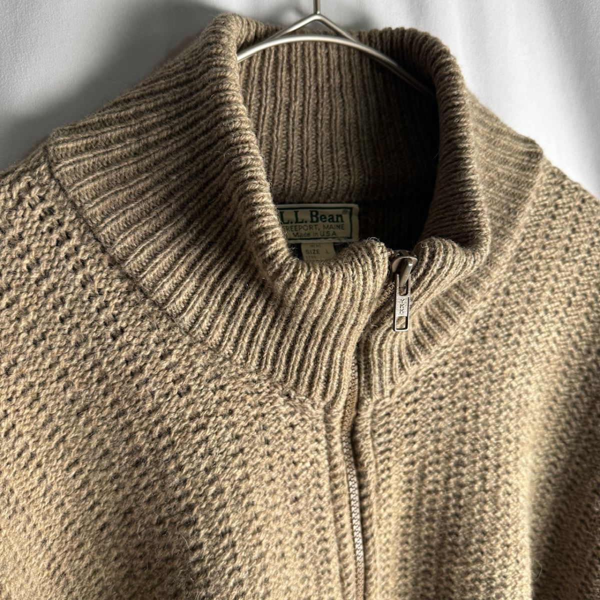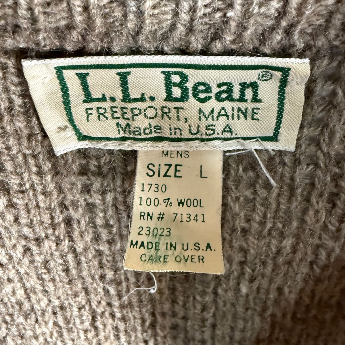 90s USA製 L.L.Beanドライバーズニット カーディガン L レザー エルボーパッチ ウール エルエルビーン 80s 古着 オールド ビンテージ