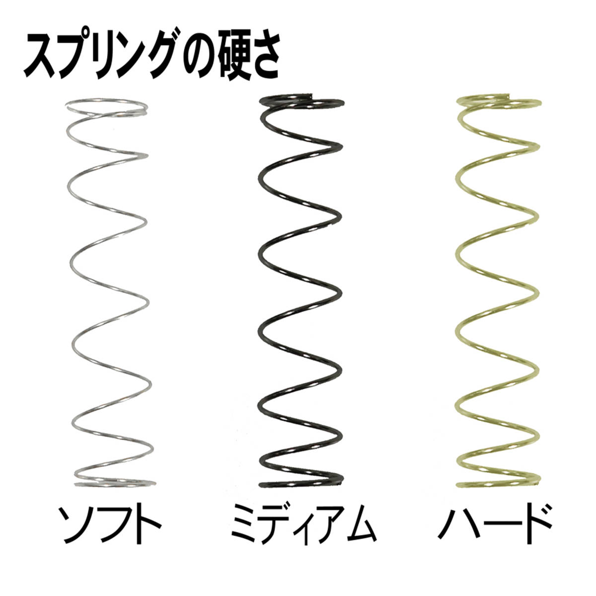 ・ 硬さの違うスプリング3種類の中からセットアップを変更可。