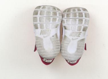 実際のサイズ表記は14cm。マジックテープ着脱。使用感があり、全体的に黒ずみ汚れがありますが、普段使いにいかがでしょうか。