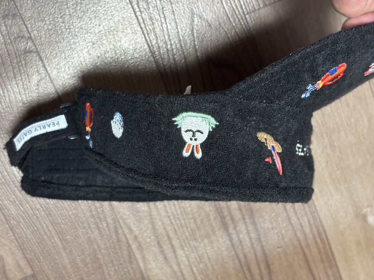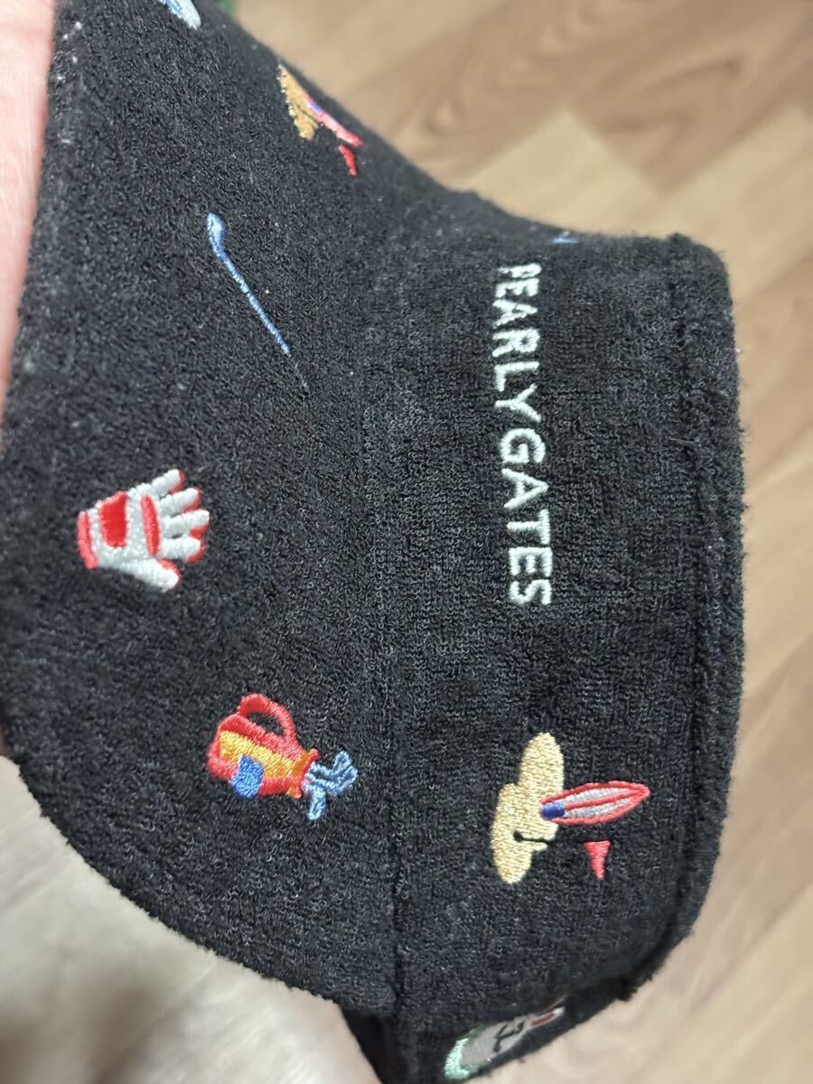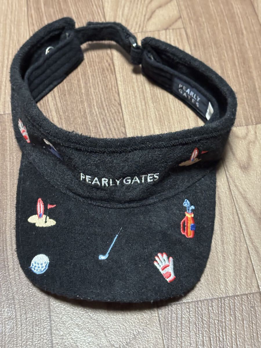 パーリーゲイツのパイル地ブラックサンバイザーです。サイズは後ろで調節出来ます。