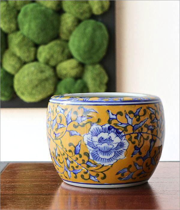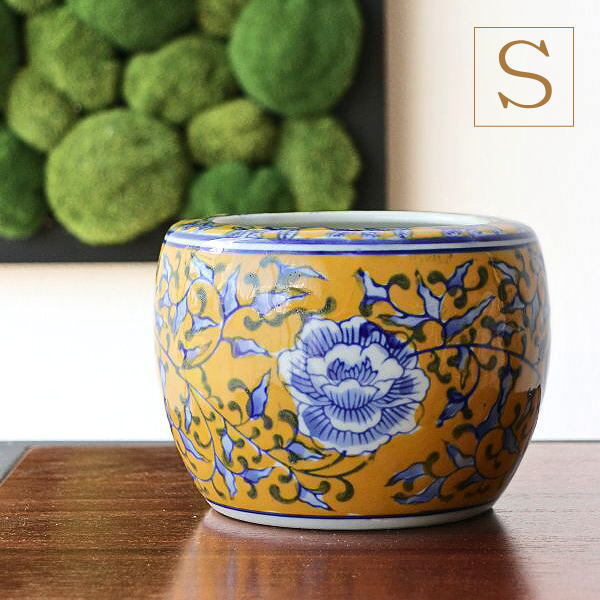 | 置くだけで和モダンな印象になる 染付けが美しい小さな火鉢は プランターカバーや花器、 小物入れとしてもオススメです 華やかさと静けさ、両方を持ち合わせた 艶やかなコントラストが目を惹く ダイナミックな花蔓草模様が魅力 【このページはSサイズです】 商品名 : ミニ火鉢 黄底 S 商品番号 : swa3967 全体のサイズ(cm) : 直径13.5×高さ10 内径 : 10 材質 : 陶器 重量 : 695g 生産国 : 中国 ※底穴は開いていません ※製造工程上出来る、色抜けやムラ、 釉薬の欠けやヨレ、混入物等が見られます ※ディスプレイによる色の違いはご了承下さい |