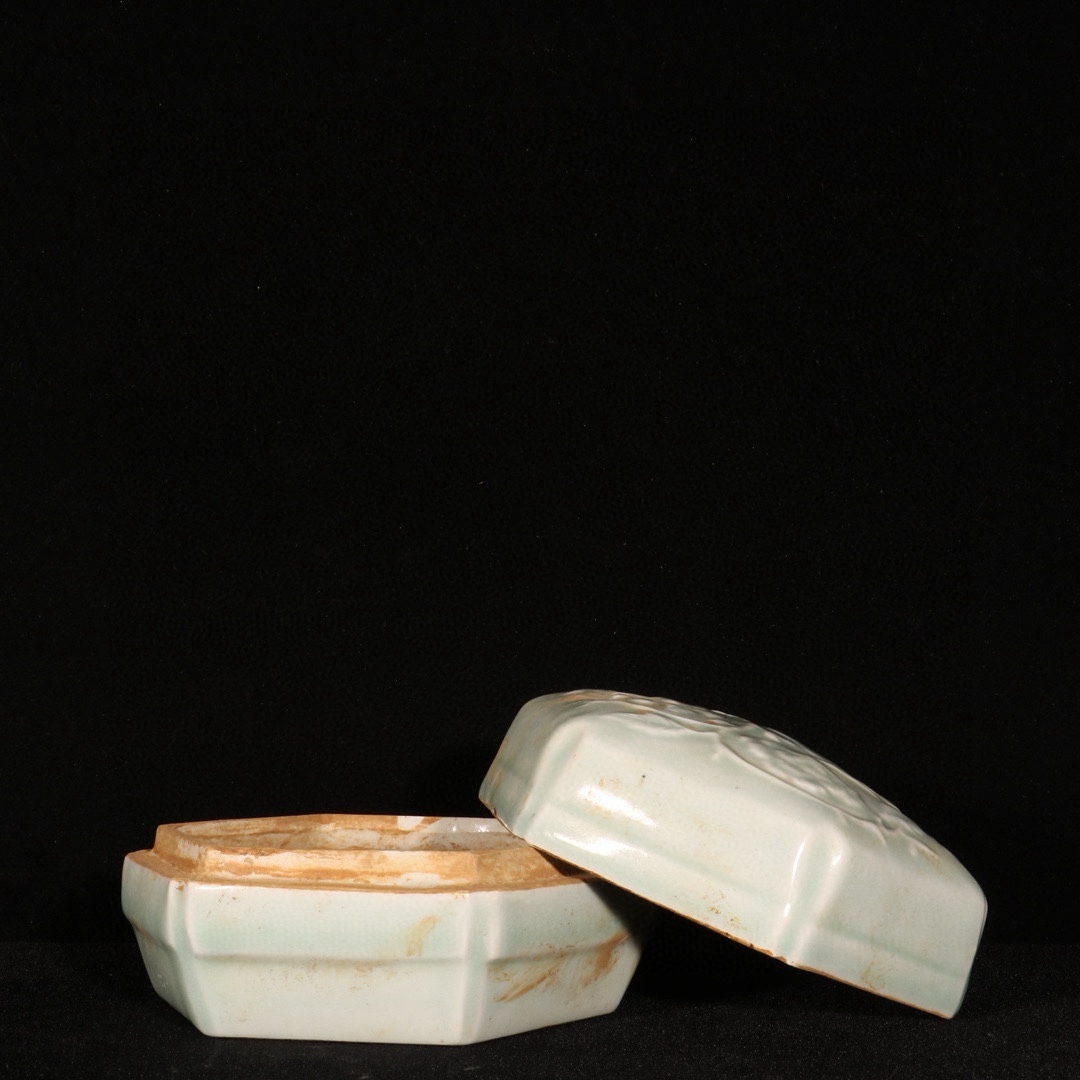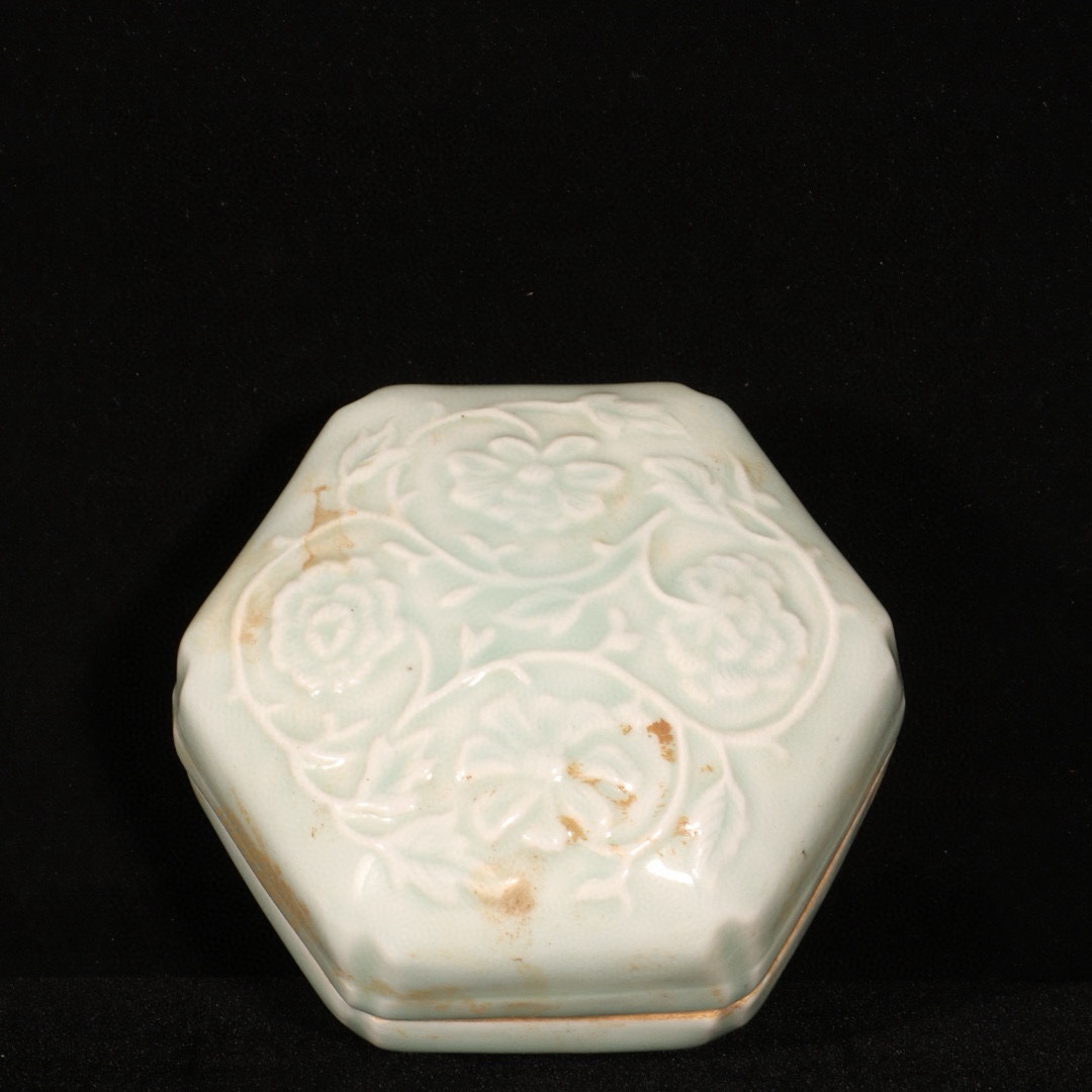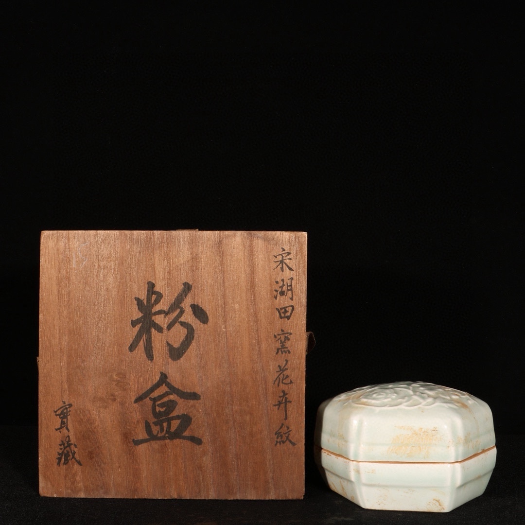 明時代 湖田窯 花紋入り粉箱 共箱付き 高さ7cm 直径11cm 中国骨董 珍品旧蔵 古賞物 時代物 807