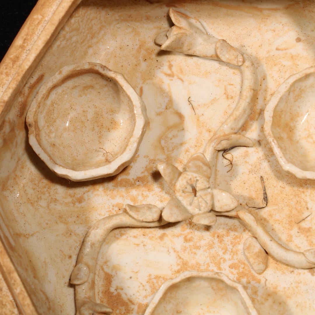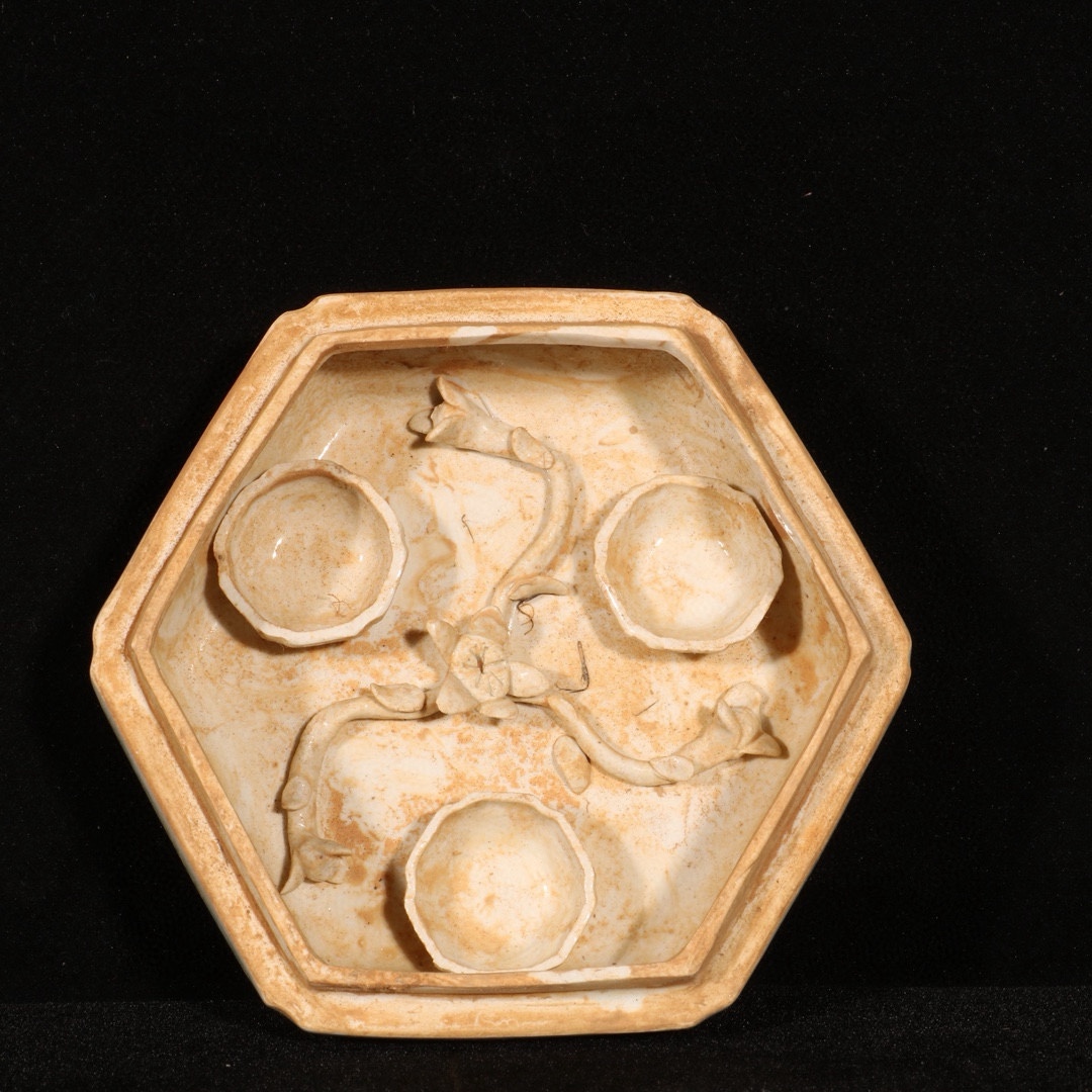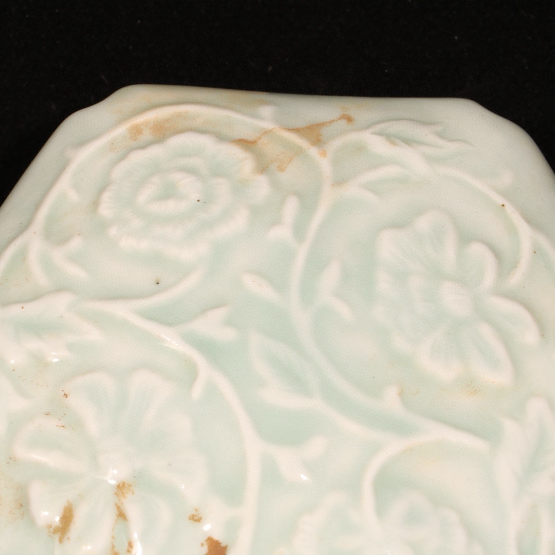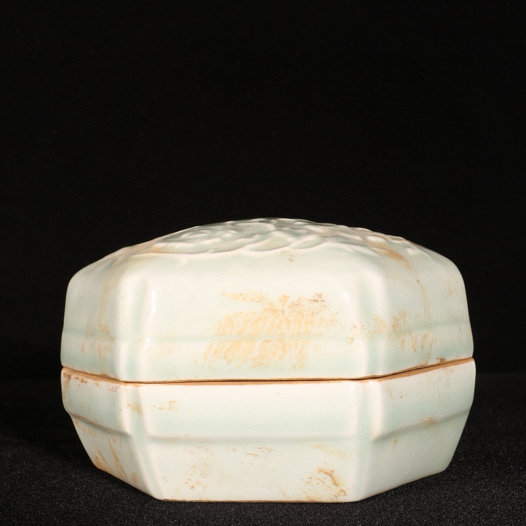 明時代 湖田窯 花紋入り粉箱 共箱付き 高さ7cm 直径11cm 中国骨董 珍品旧蔵 古賞物 時代物 807