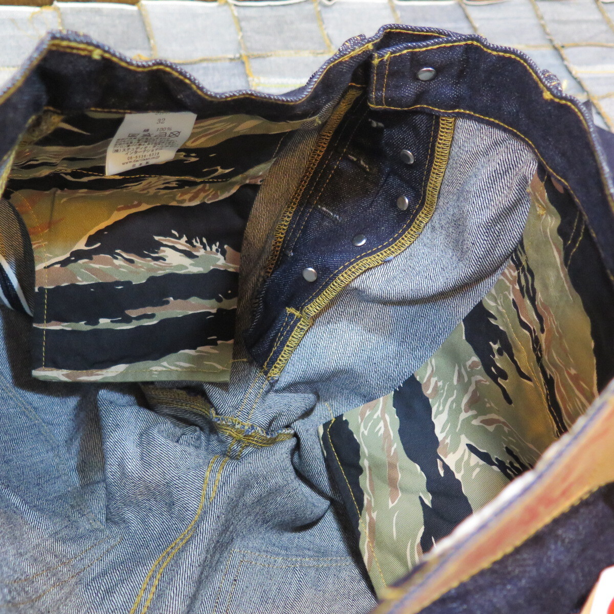 ポケットの袋布にはベトナム戦争で使用されたタイガーストライプ迷彩を採用しています。