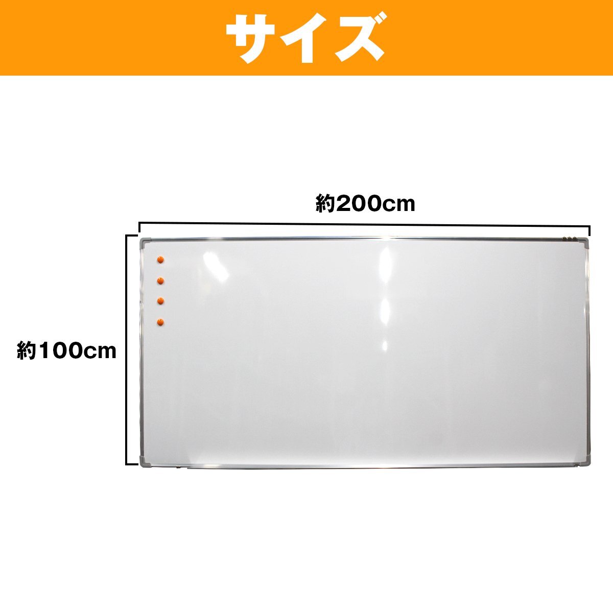 ホワイトボード 壁掛け 100cm×200cm 1000mm×2000mm 無地 マグネット対応 オフィス 会議室 打ち合わせ 薄型 アルミフレーム