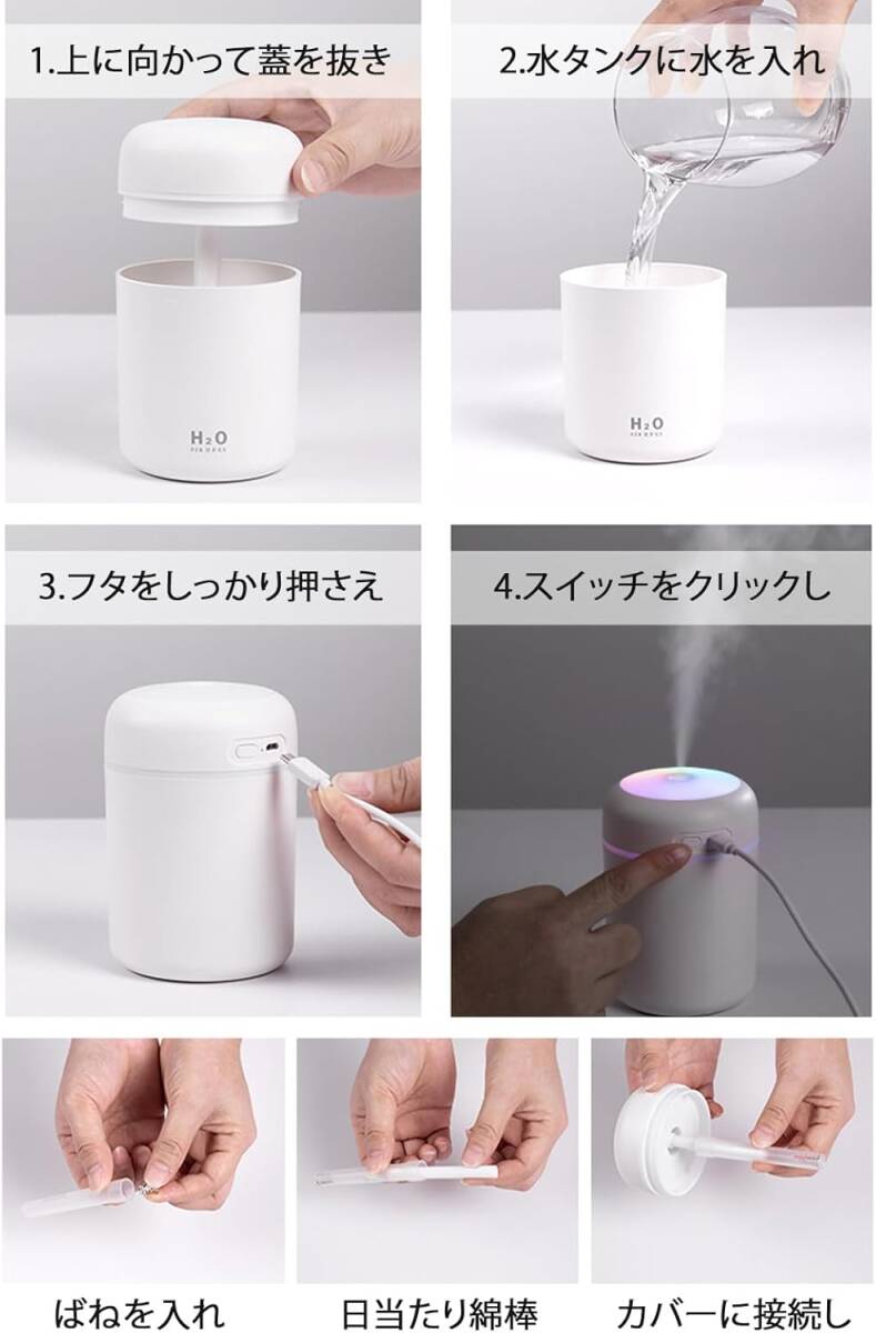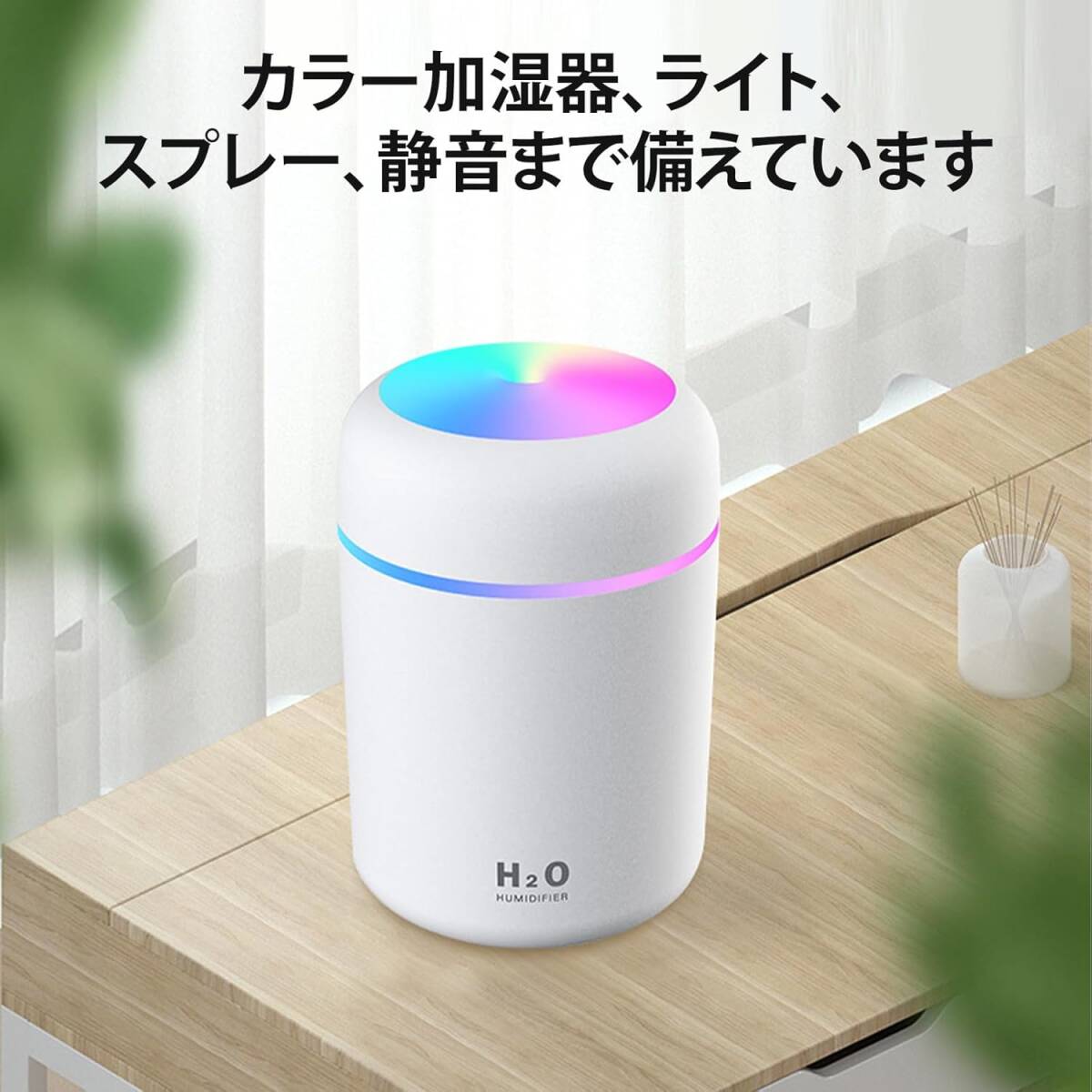 加湿器 小型 卓上USB加湿器 超音波式 上から給水 静音 36db以下 ナイトライト 色夜灯運転4-6時間自働的電断 安全の隠れた危険を確保